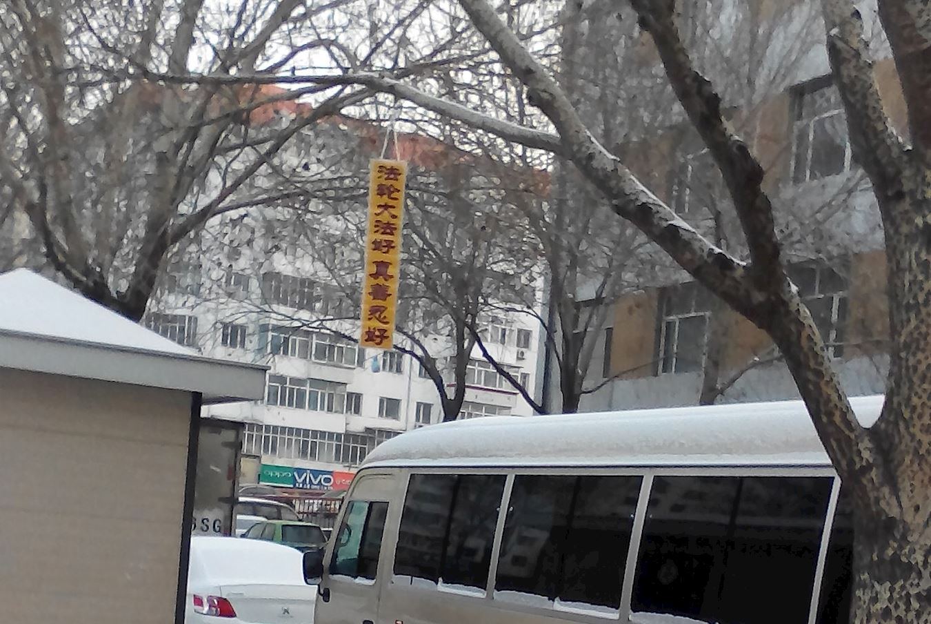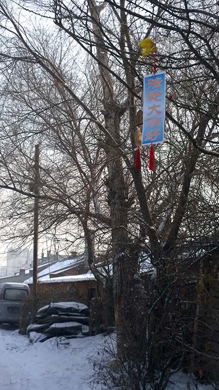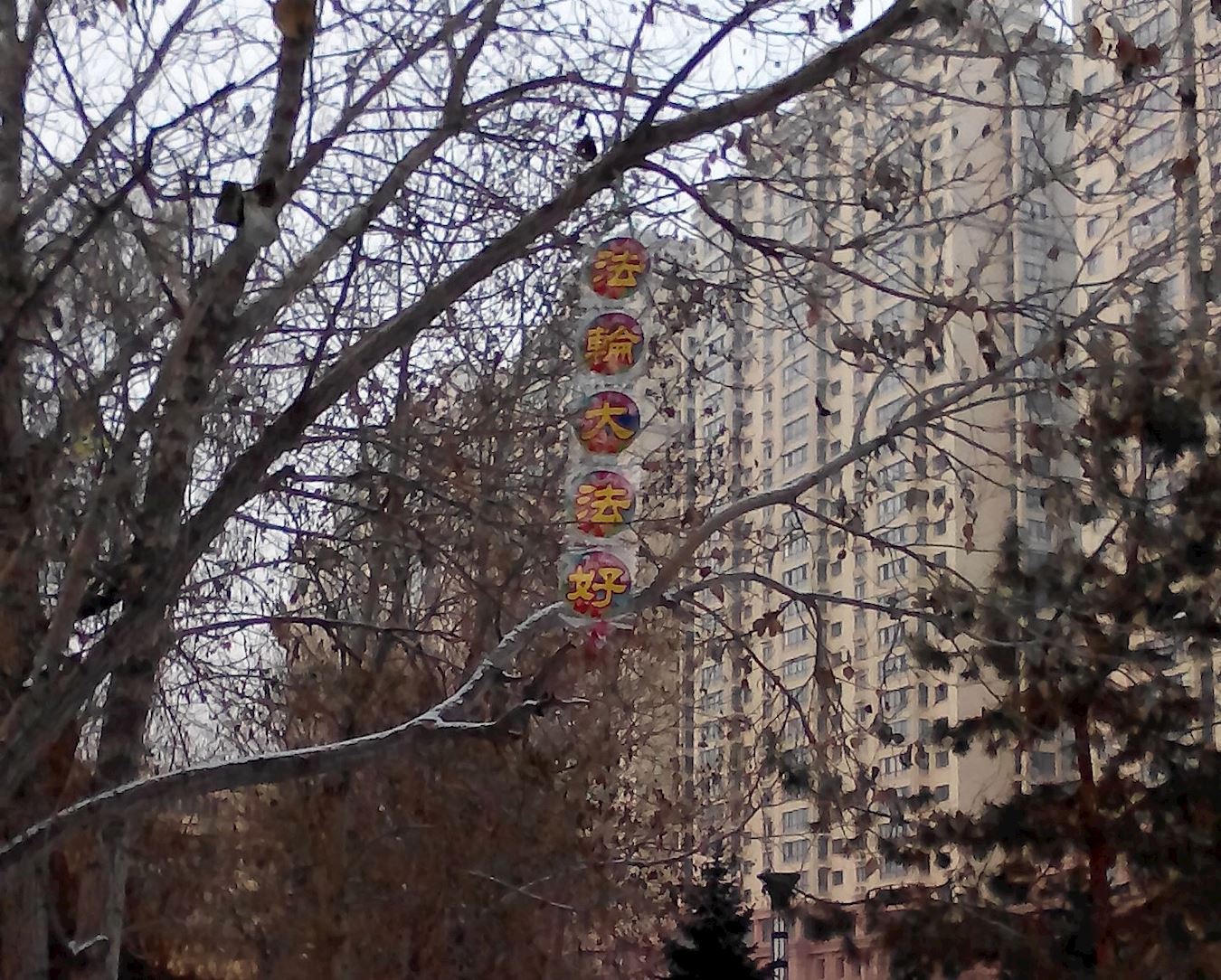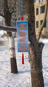 • 哈尔滨市区近日出现的真相条幅与树挂