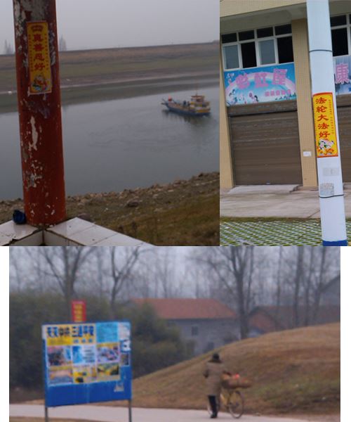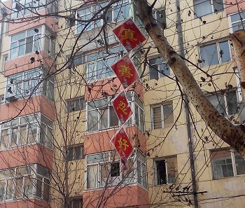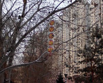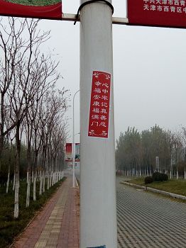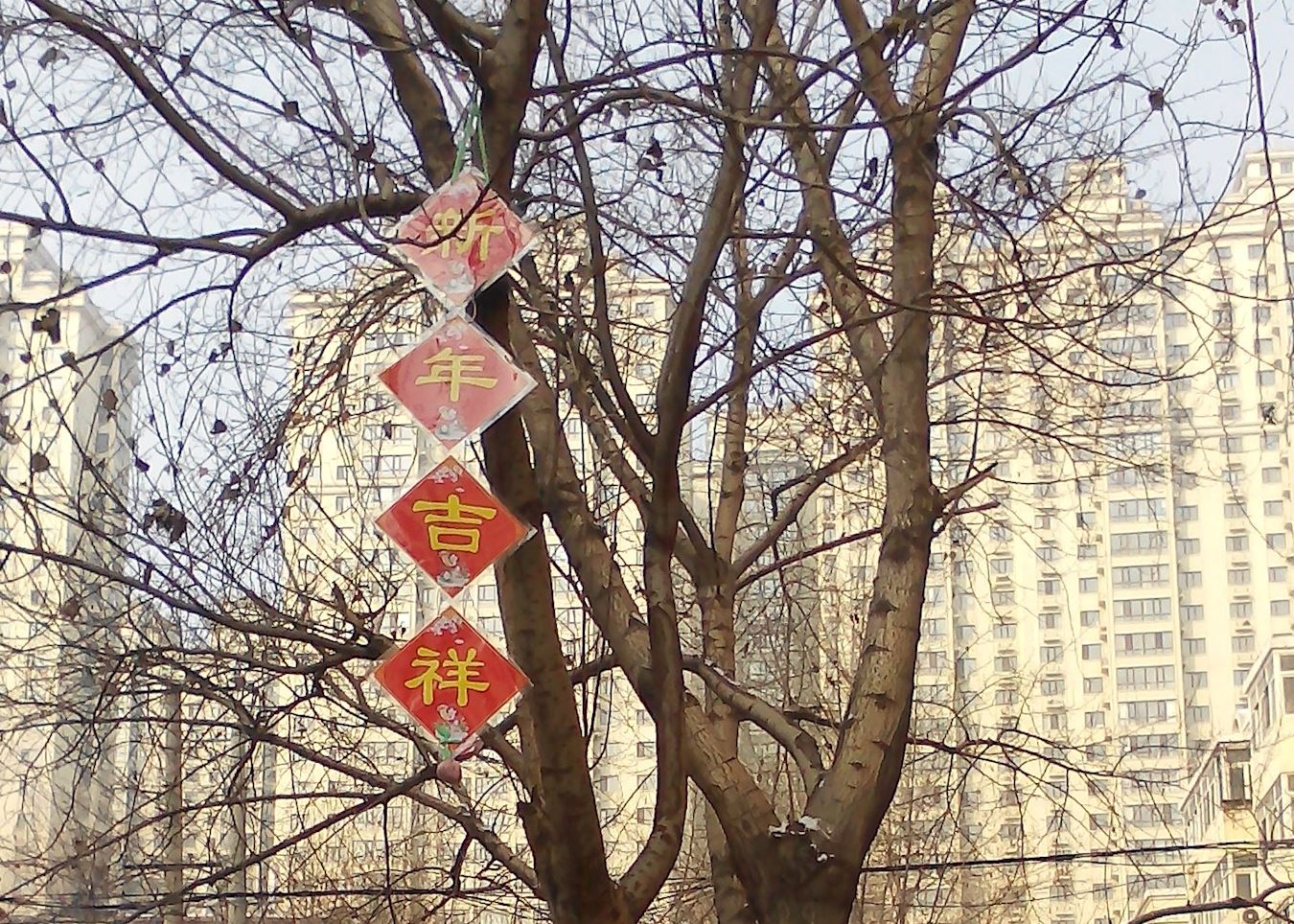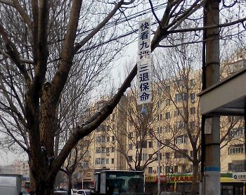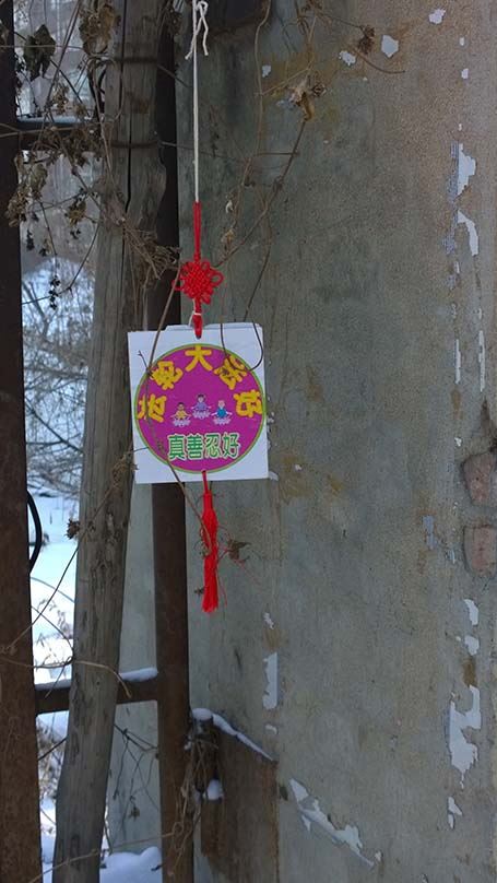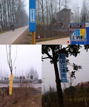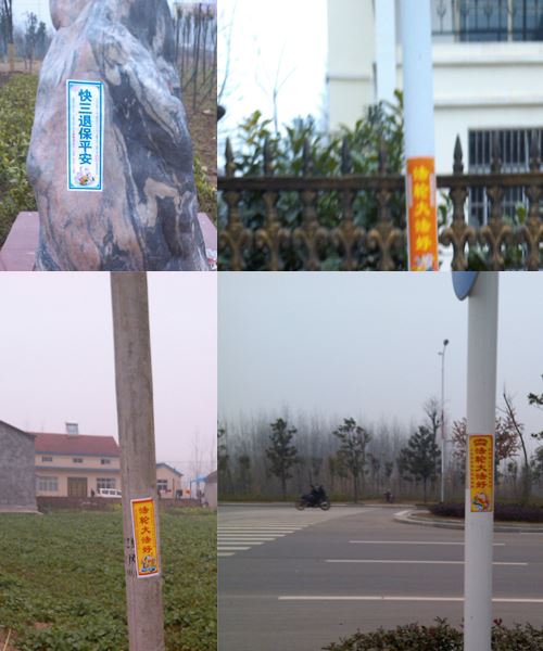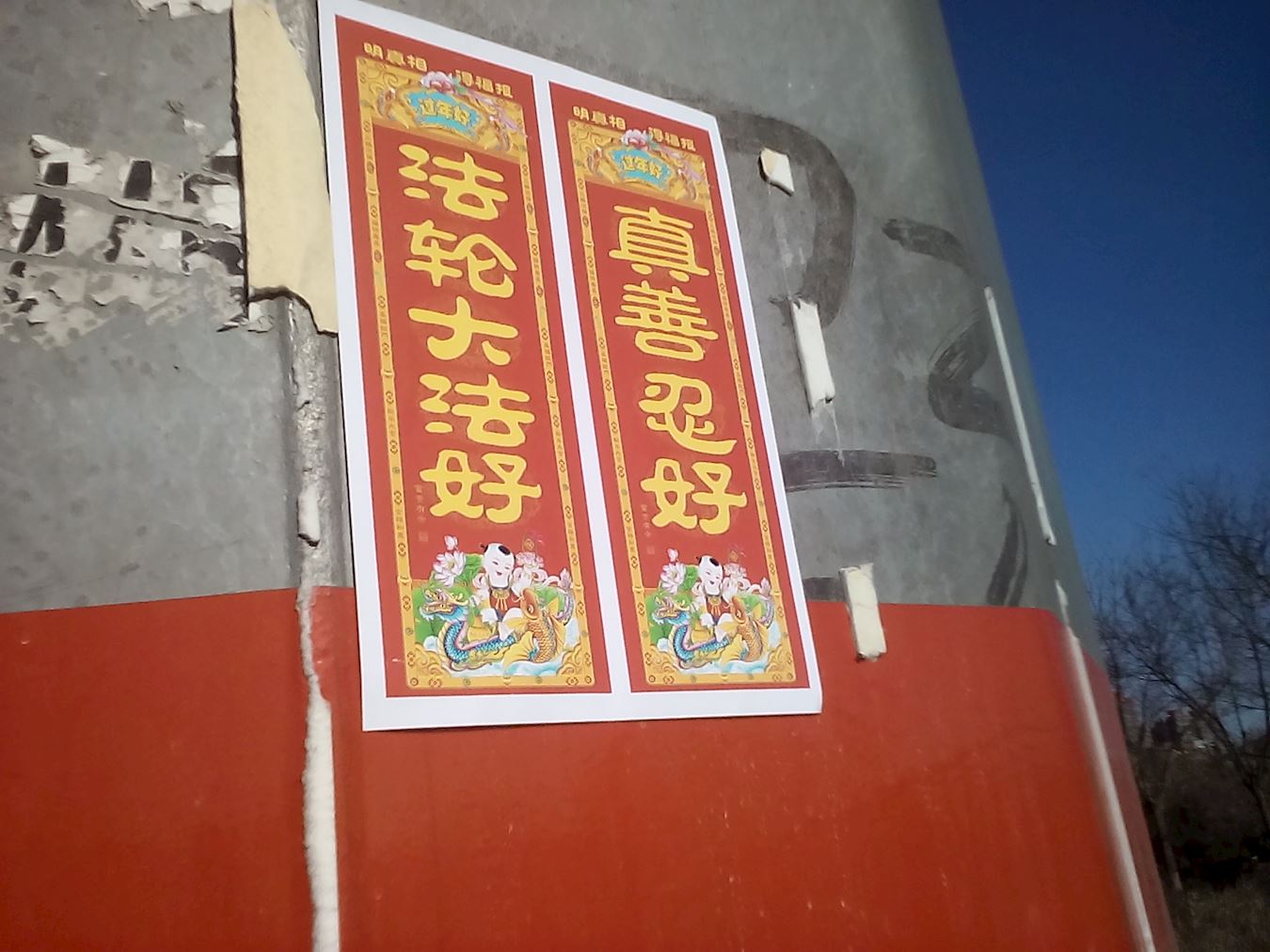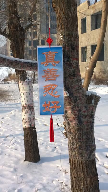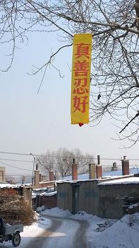 大陆各地树挂、条幅、海报传递新年祝福和真相