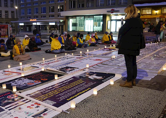 一月十四日傍晚,瑞士法轮功学员来到首都伯尔尼的孤儿院广场,要求制止中共对法轮功的迫害及活摘法轮功学员器官的罪行。