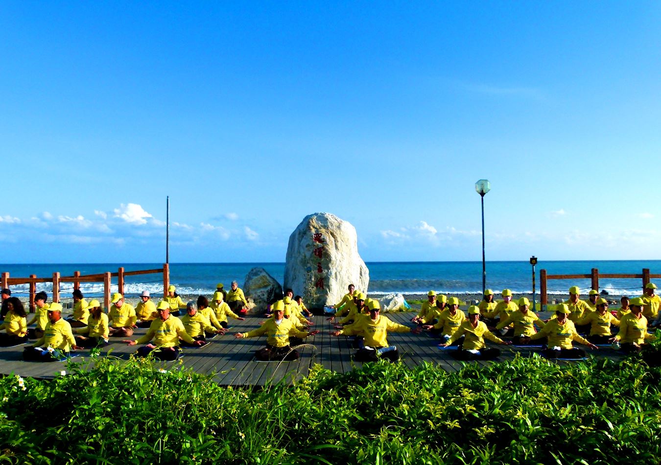 【明慧网二零一七年一月二十四日】二零一七年中国新年来临之际,台湾台东部份法轮功学员齐聚在台东市海滨公园,双手合十向慈悲伟大的法轮功创始人李洪志师父拜年,“恭祝师尊新年快乐!”的声音在太平洋滨直上云霄。法轮功学员展示祥和优美的五套功法,午后阳光普照,金黄色上衣映着蓝天碧海,美丽画面吸引许多游客与民众观看。