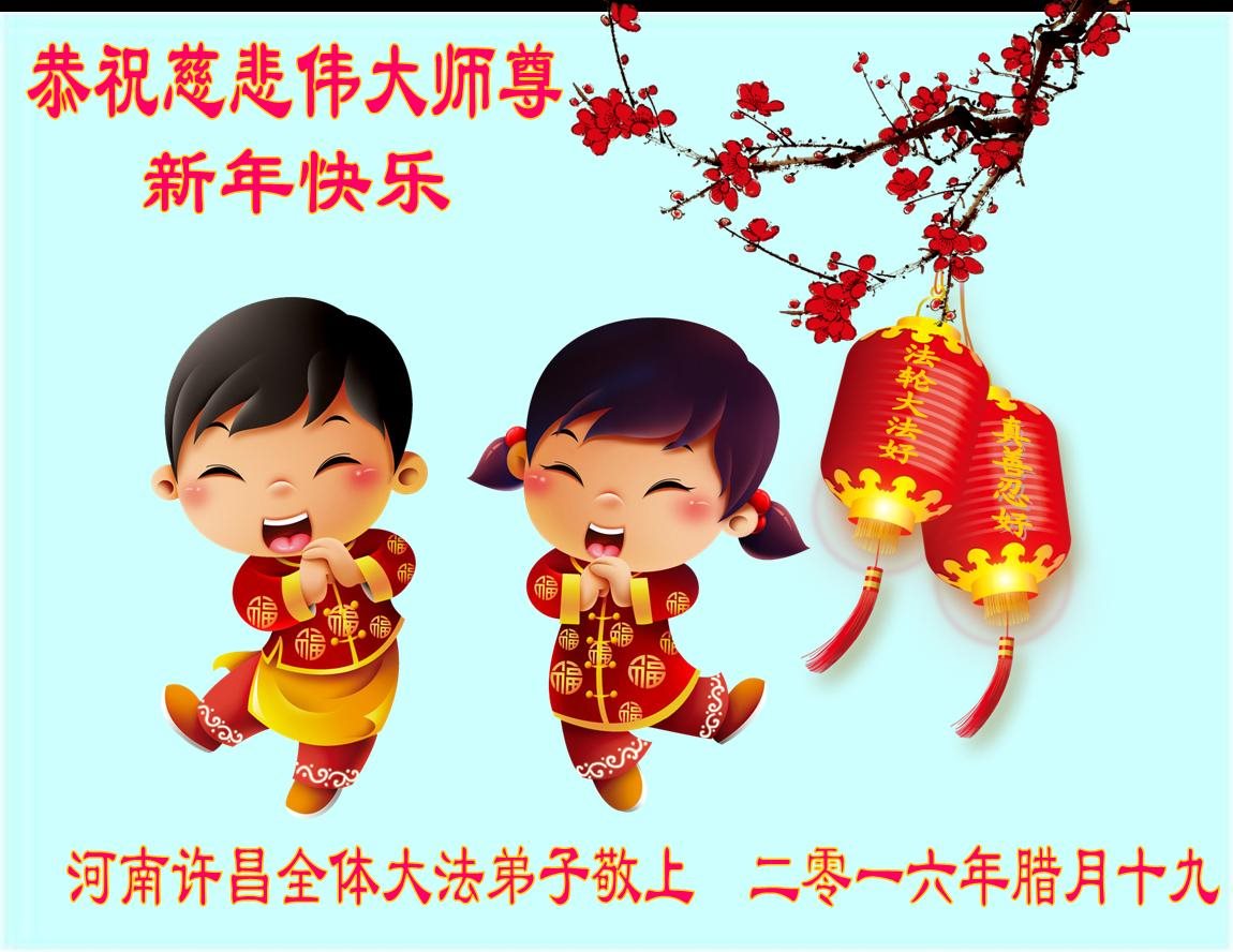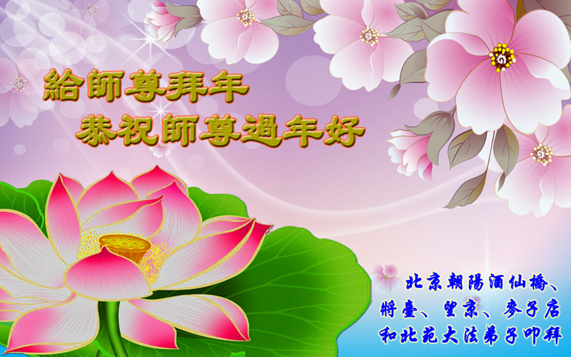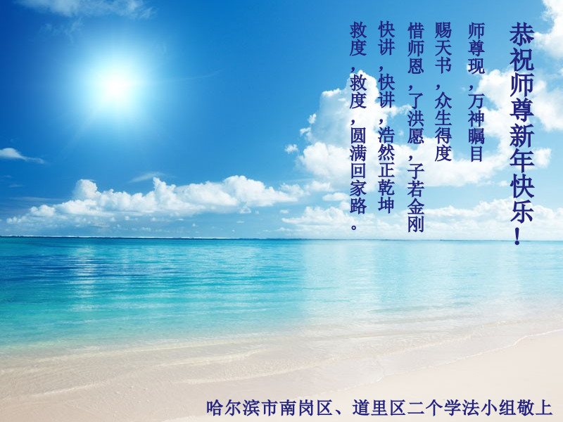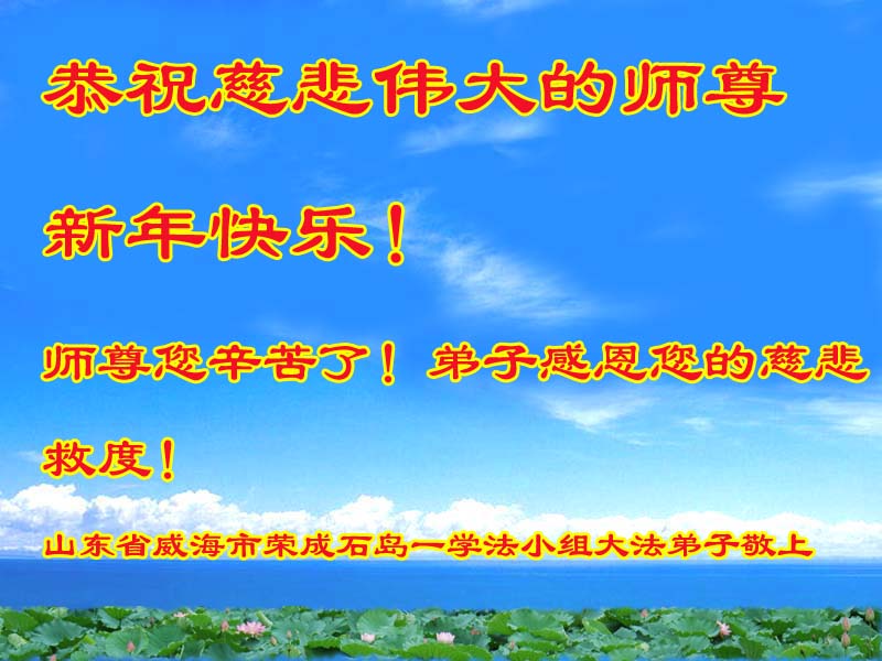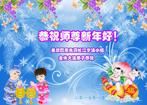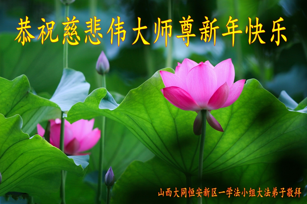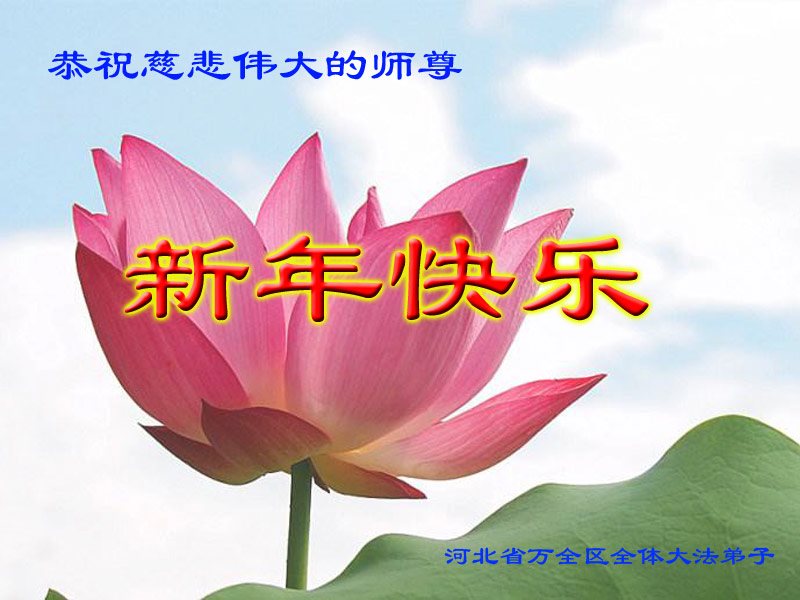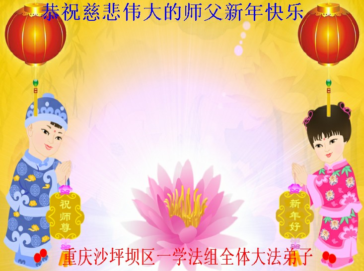 师父新年好!在师父的慈悲看护下,我们的资料点一直在发挥应有的作用,我们知道,我们能做好的每一件事情都是在师父的慈悲看护下完成的。对师父崇敬的心是用人类最美好的语言也无法表达完整的。在此新年到来之际,我们全体大法弟子用修炼人最纯净的心向师父问好!祝愿我们慈悲伟大的师父新年快乐!