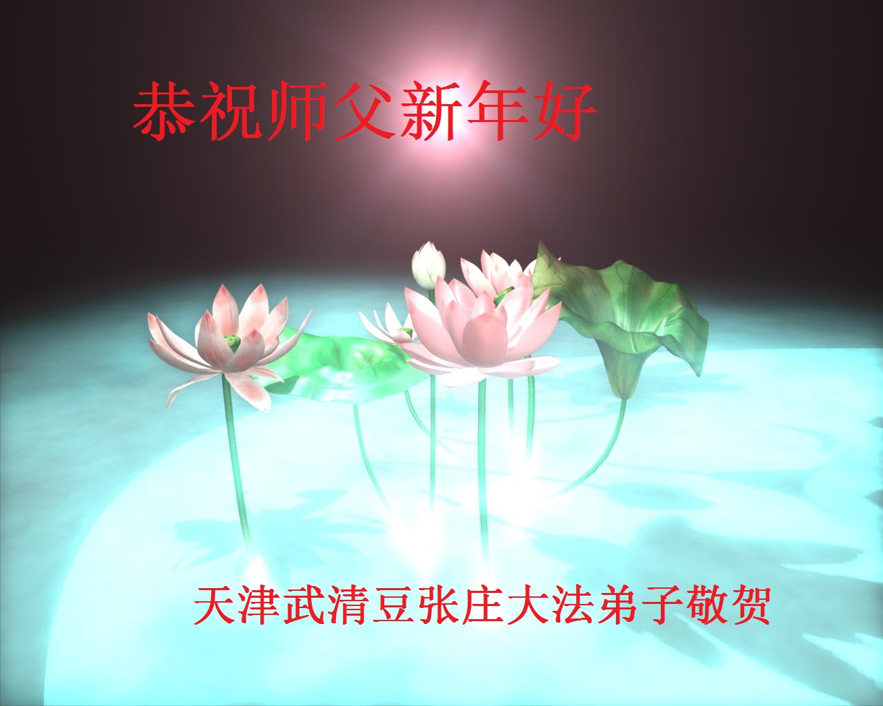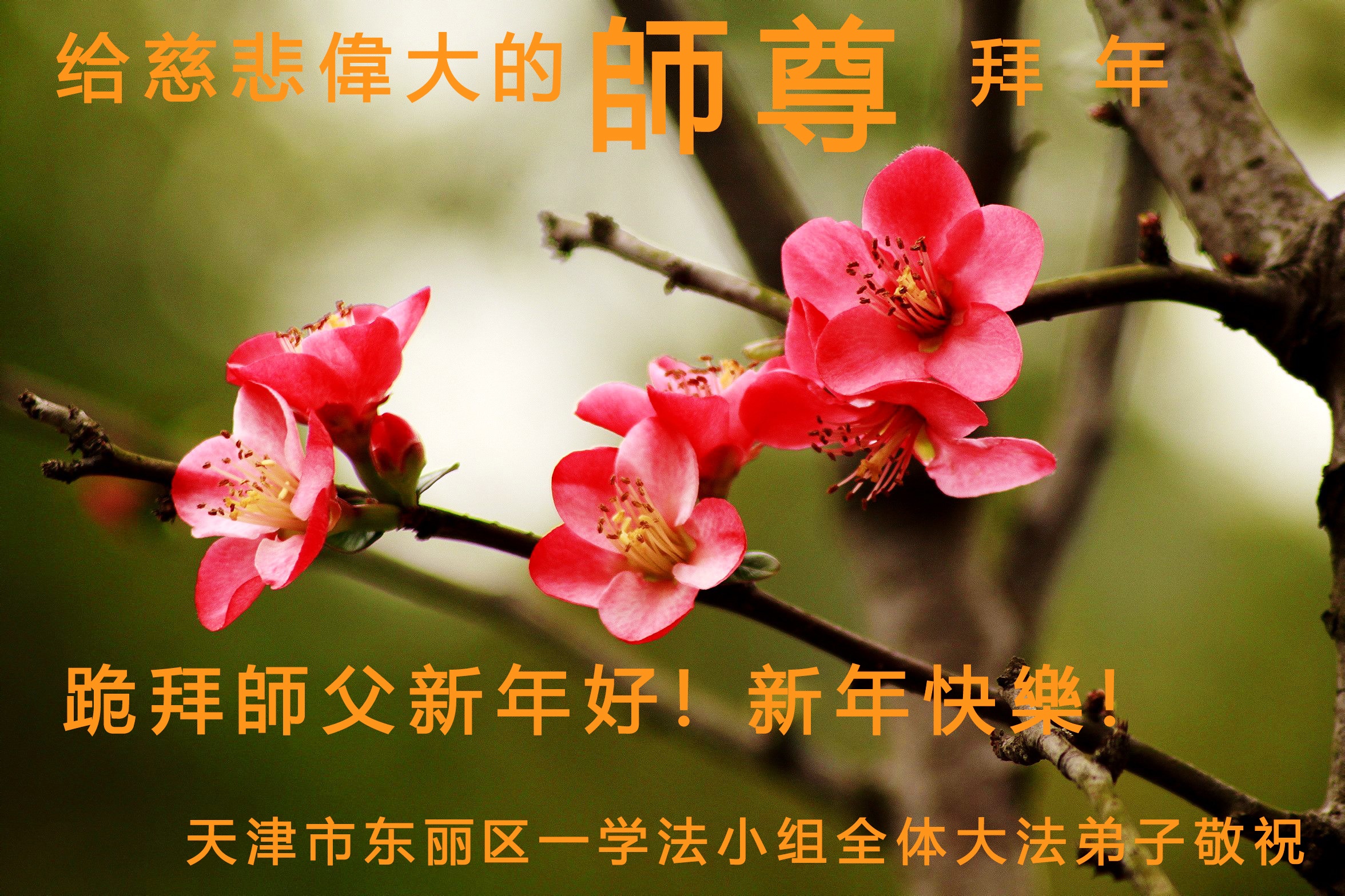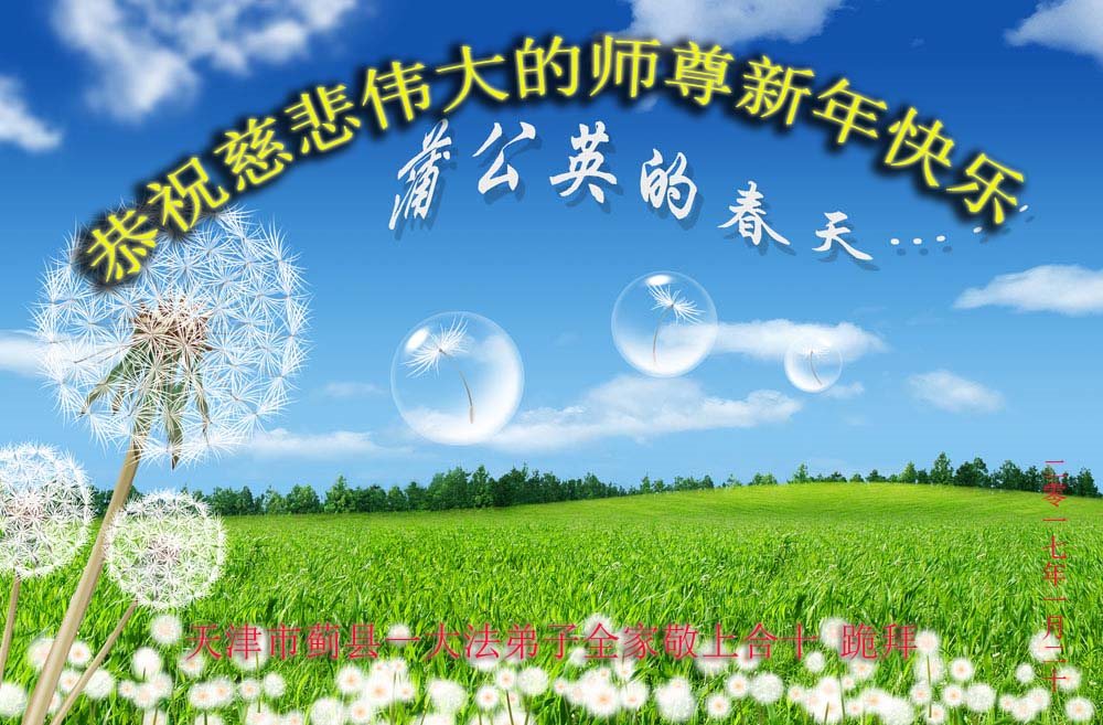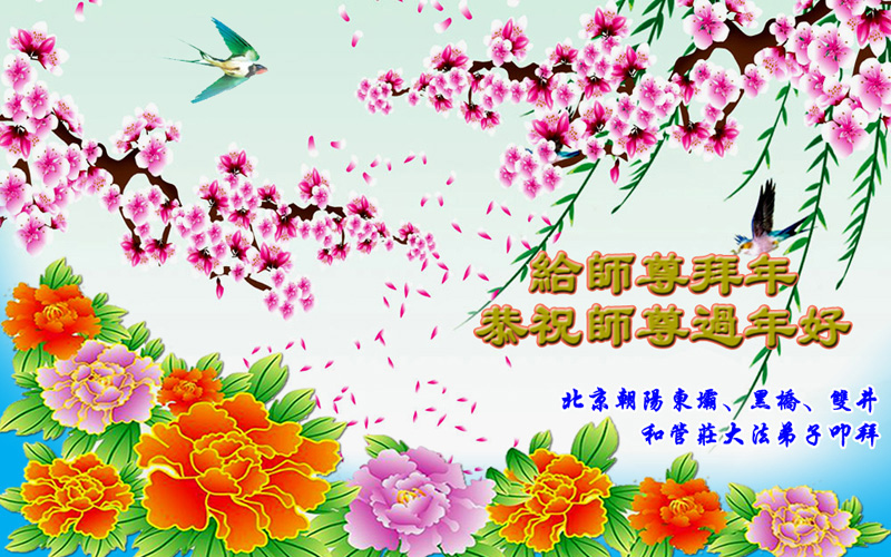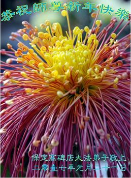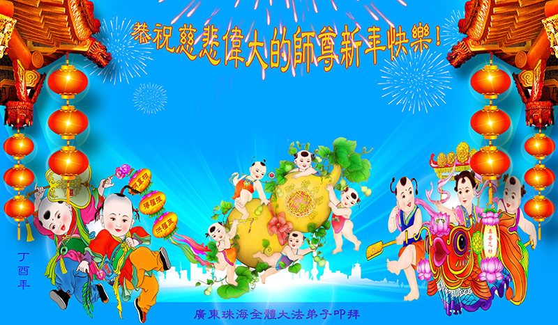 师父新年好!在师父的慈悲看护下,我们的资料点一直在发挥应有的作用,我们知道,我们能做好的每一件事情都是在师父的慈悲看护下完成的。对师父崇敬的心是用人类最美好的语言也无法表达完整的。在此新年到来之际,我们全体大法弟子用修炼人最纯净的心向师父问好!祝愿我们慈悲伟大的师父新年快乐!