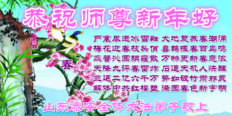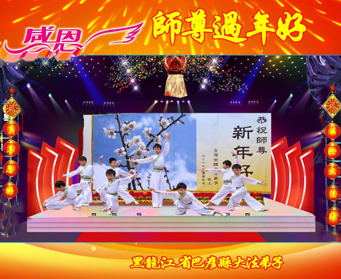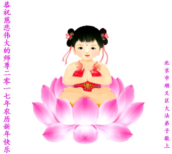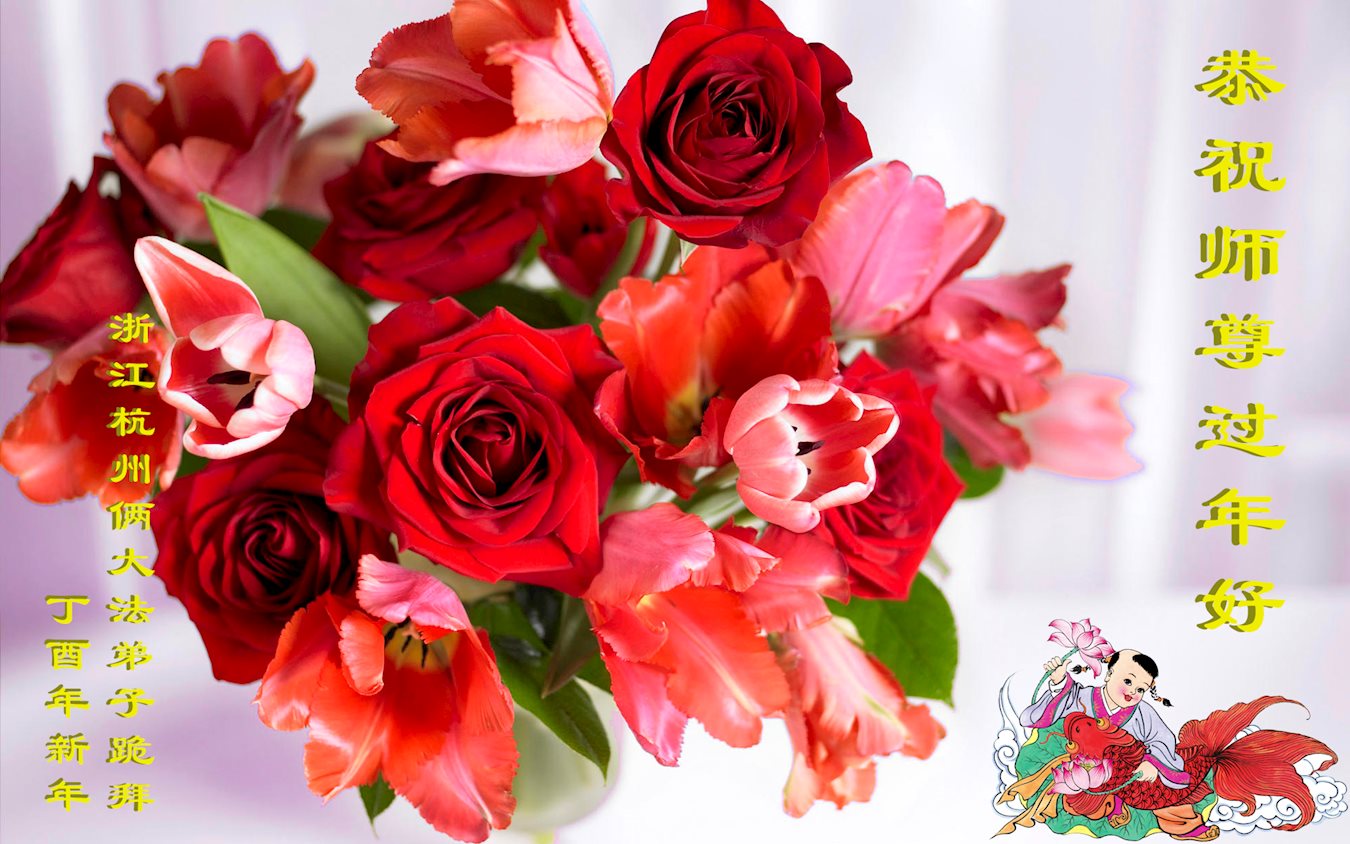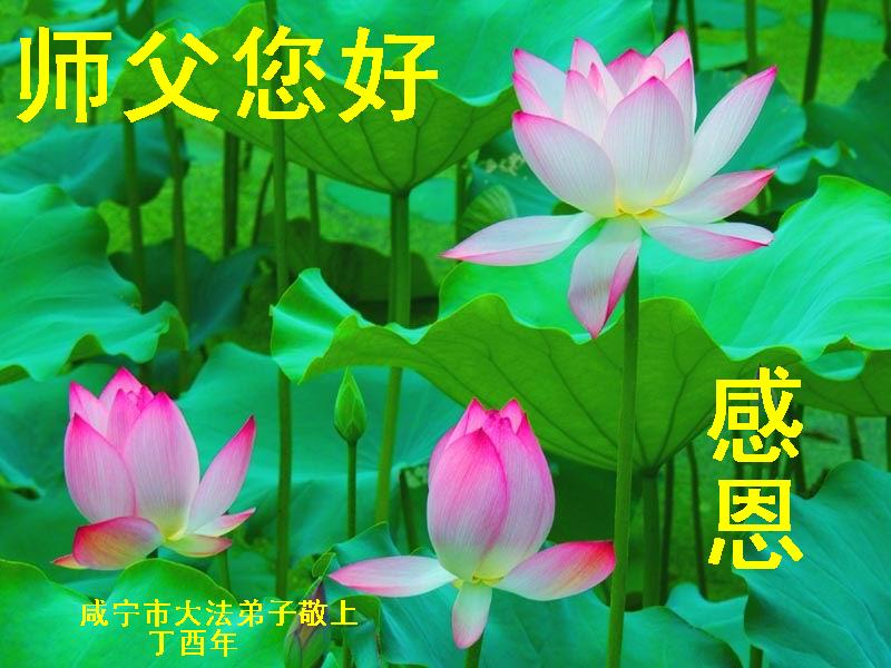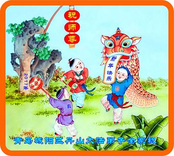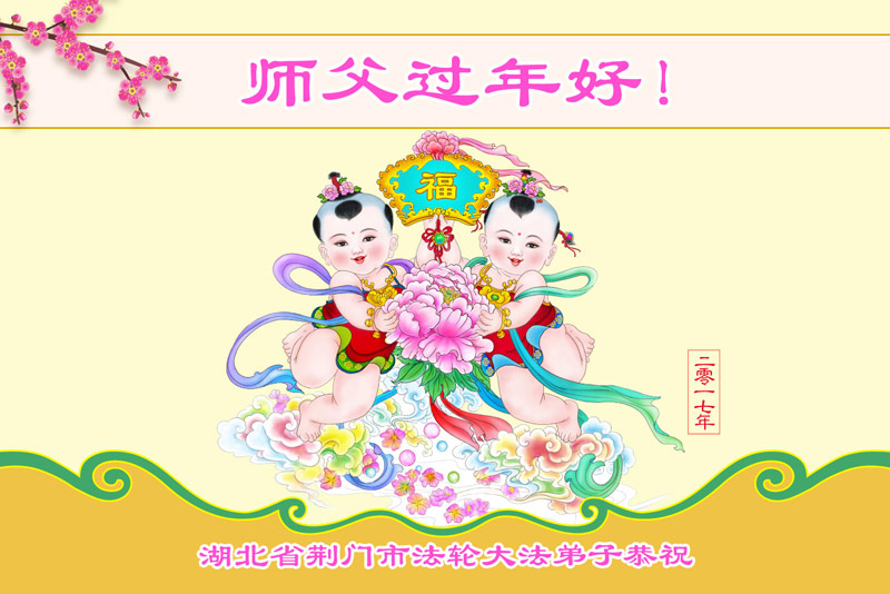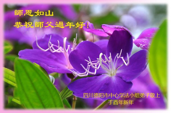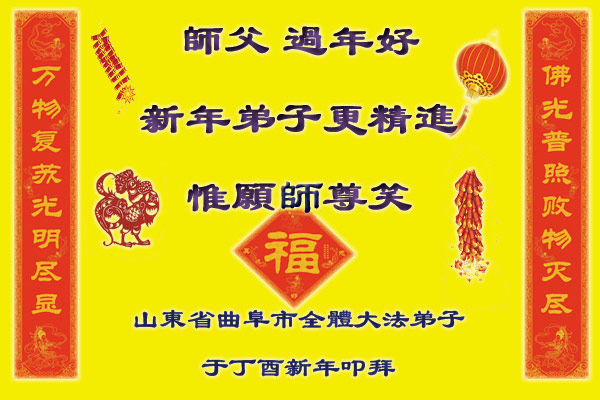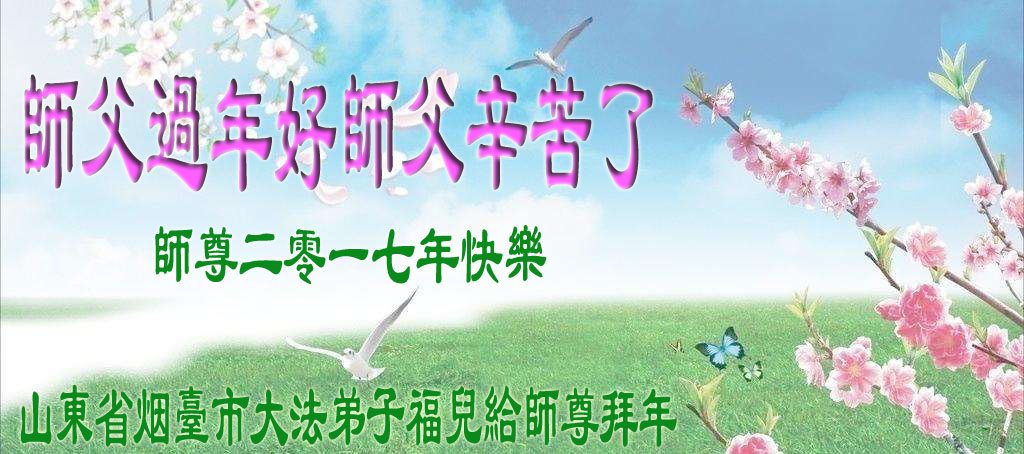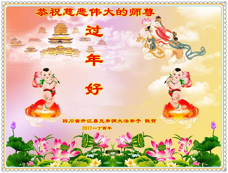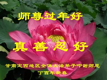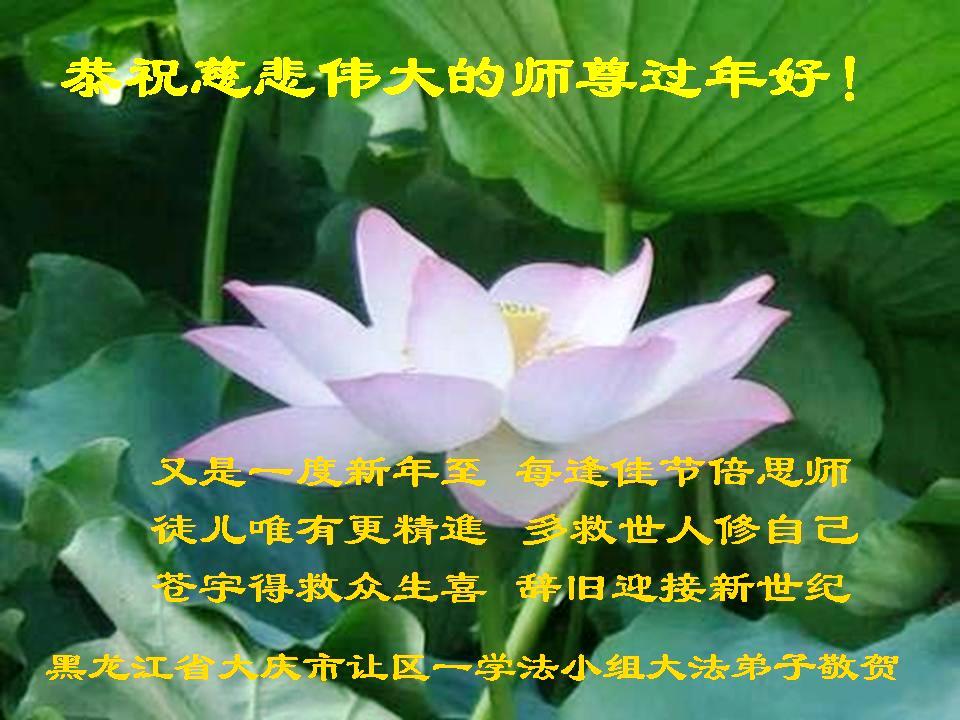 值此丁酉年新年之际,来自四川遂宁、辽宁抚顺、吉林长春、山东省威海、河北石家庄、吉林德惠、四川成都、山东招远、辽宁鞍山、湖北武汉、吉林舒兰、辽宁义县、重庆开州、湖北天门、胜利油田等七省十五地的资料点的大法弟子给慈悲伟大的李洪志师尊拜年!