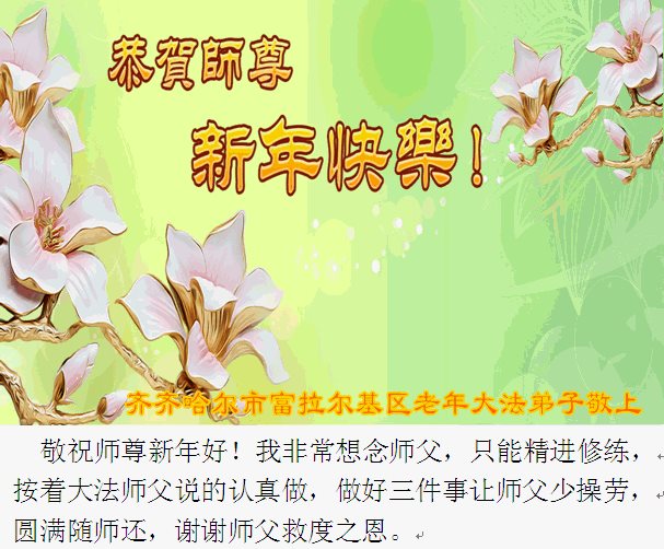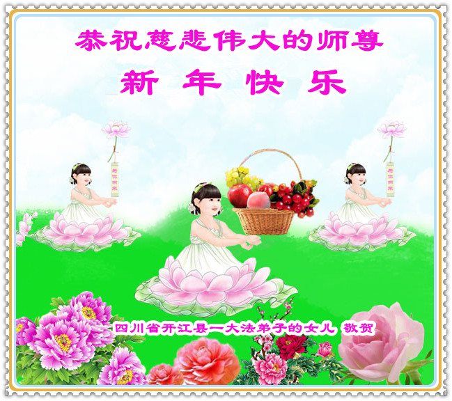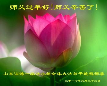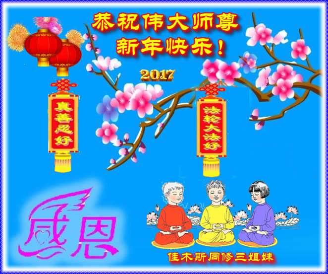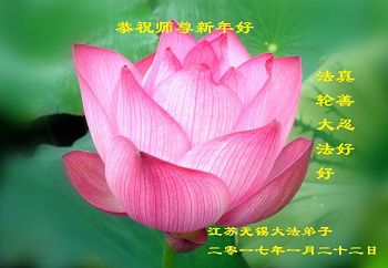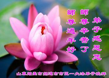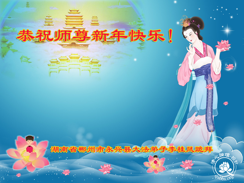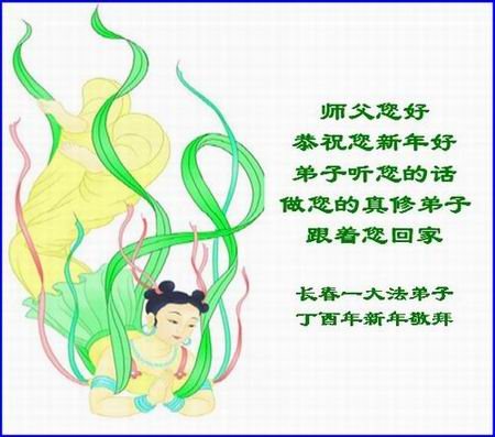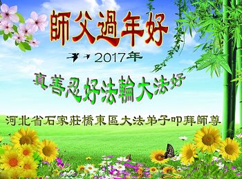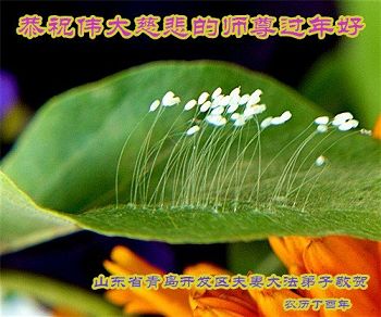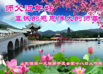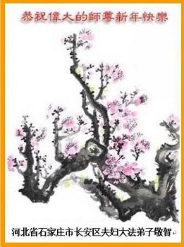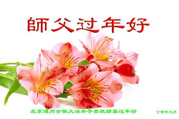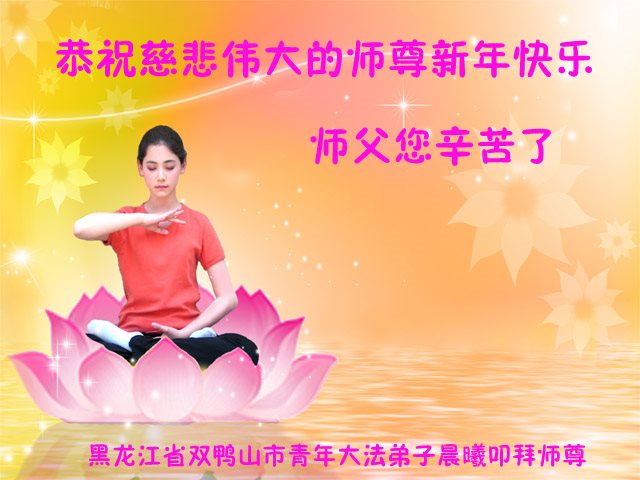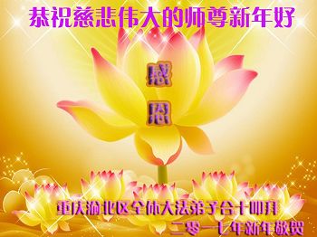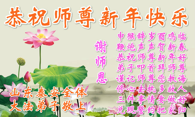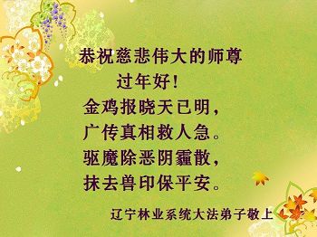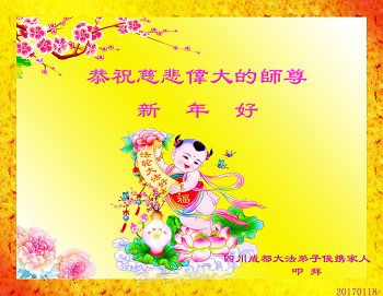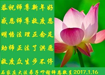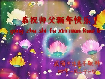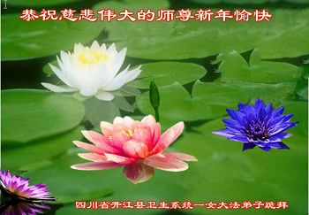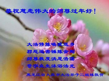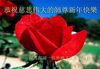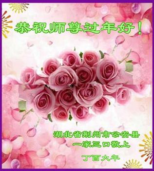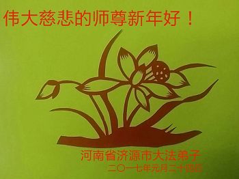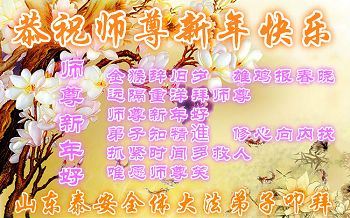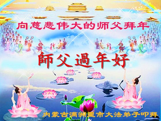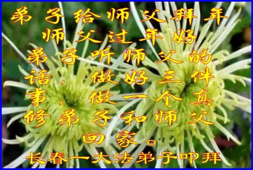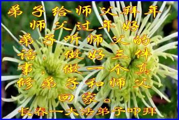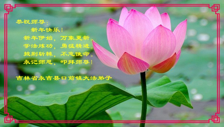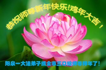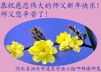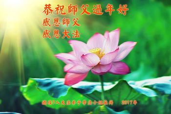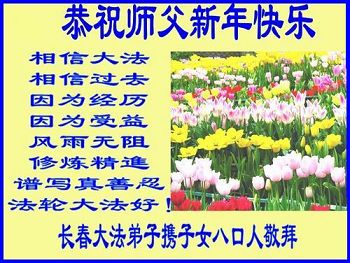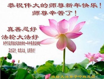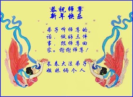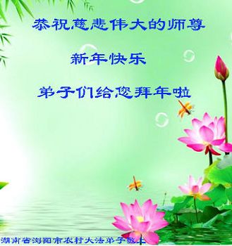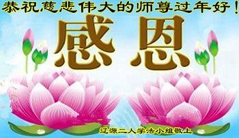 “要感谢师父的太多太多了,师父把大法传给我们,把我以前不正的行为归正,身心受益无法用言语答谢,内心说:师父谢谢您,师父新年好。”