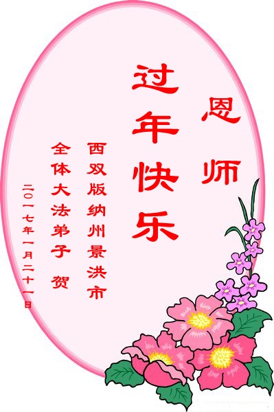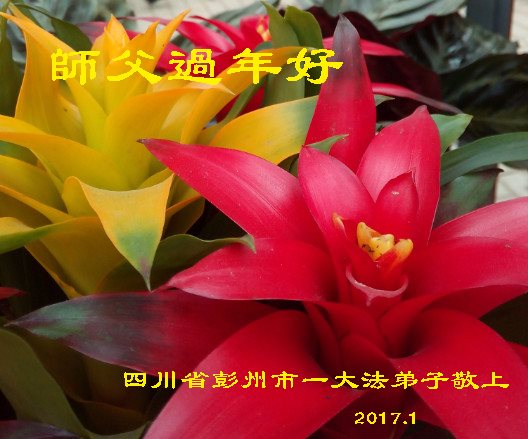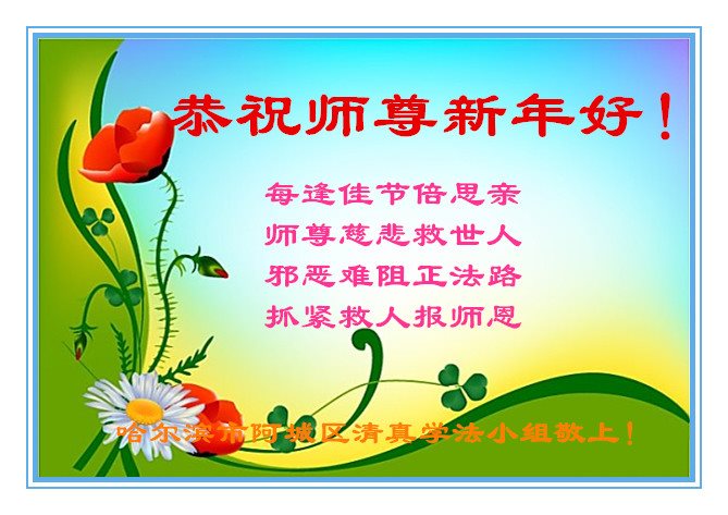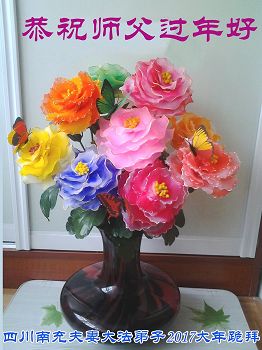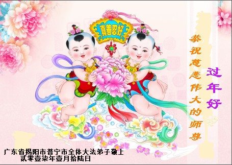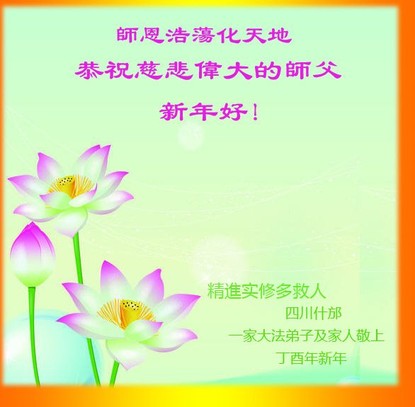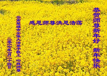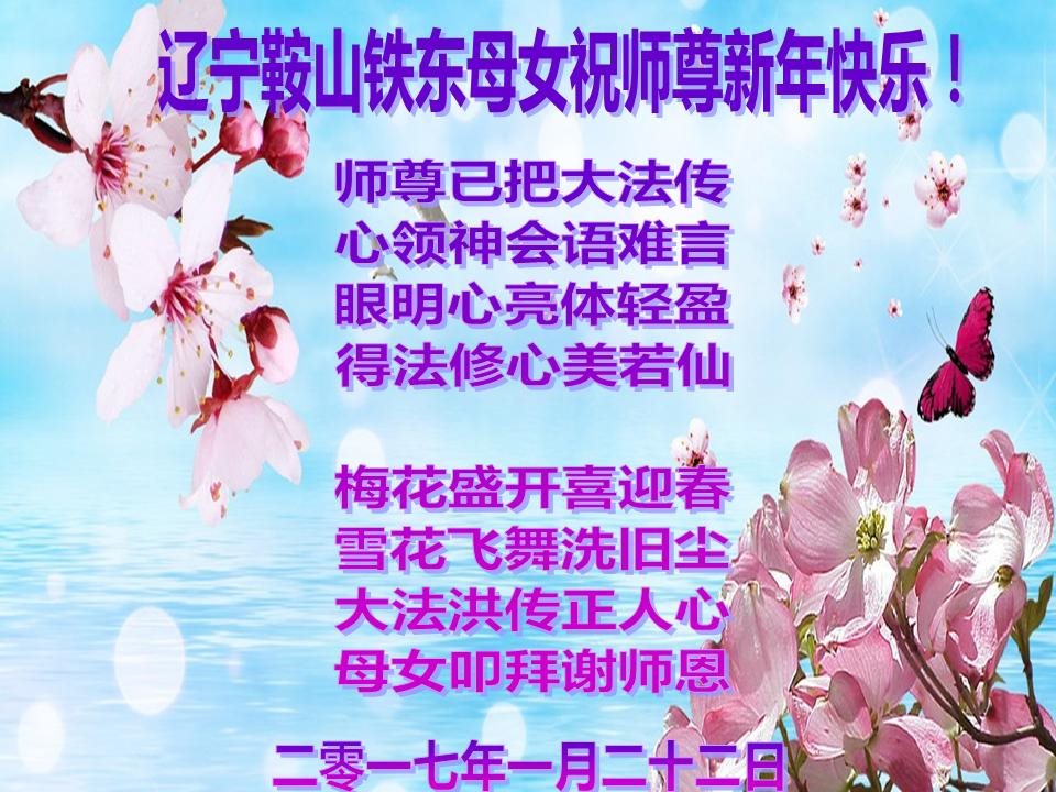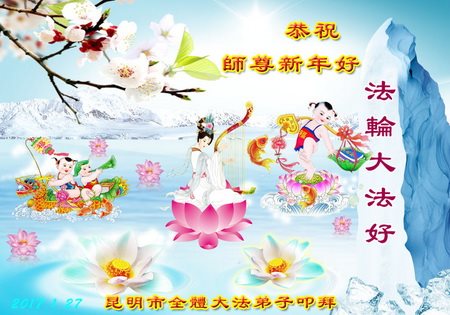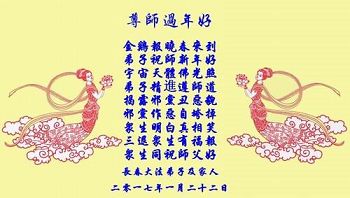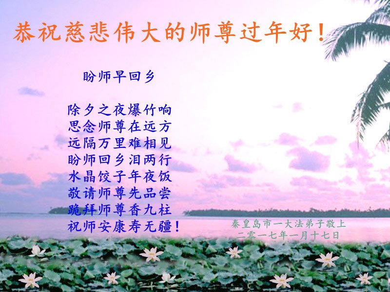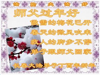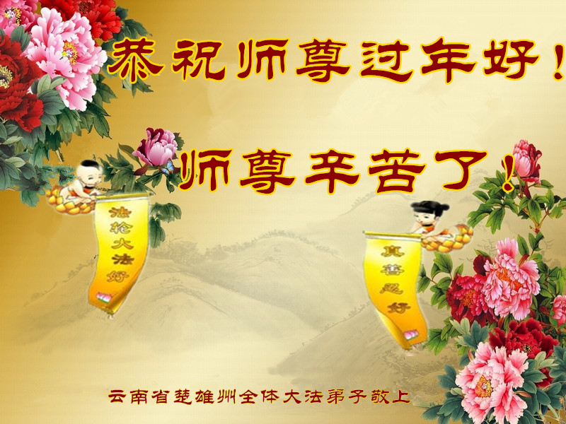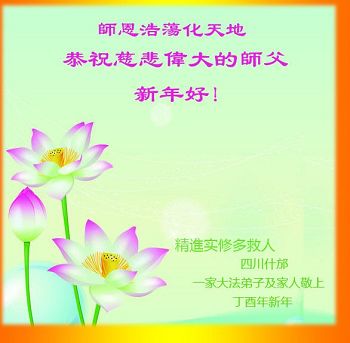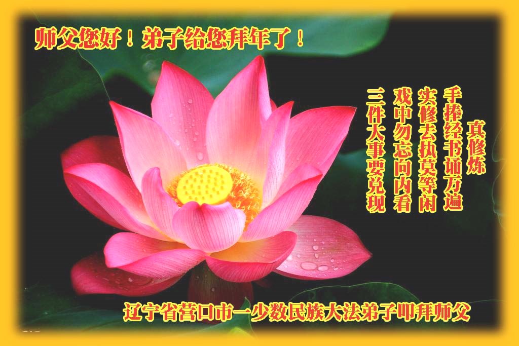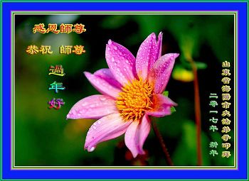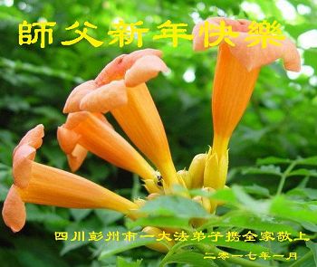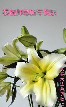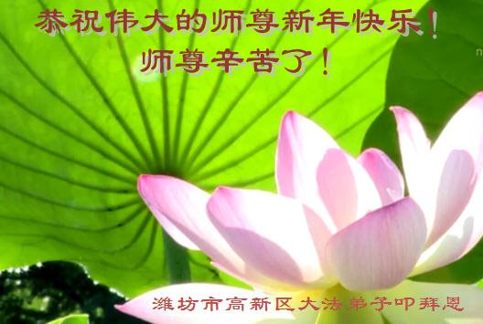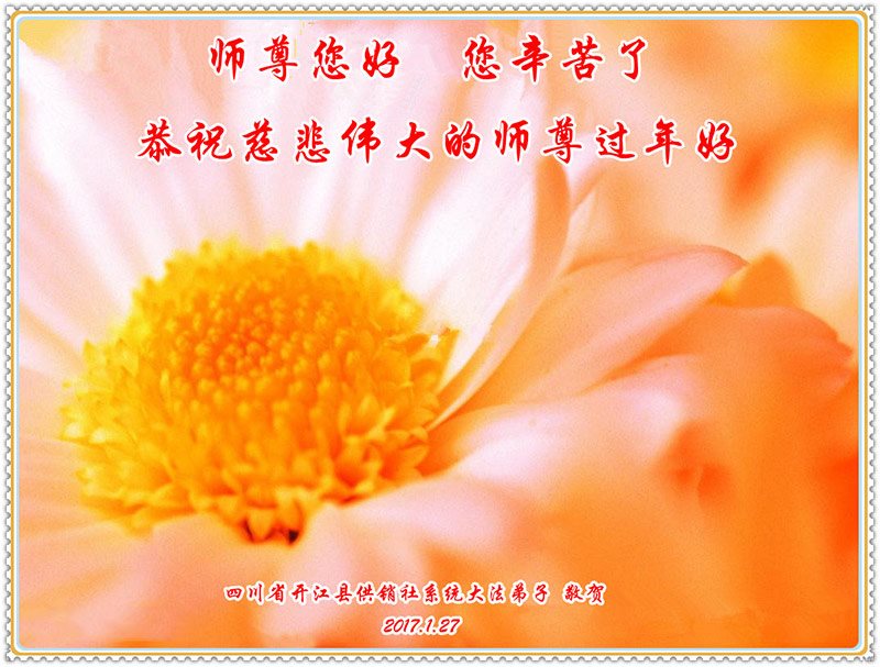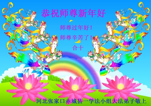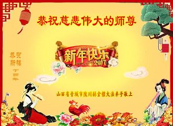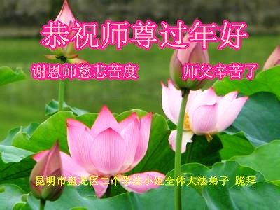 “要感谢师父的太多太多了,师父把大法传给我们,把我以前不正的行为归正,身心受益无法用言语答谢,内心说:师父谢谢您,师父新年好。”
