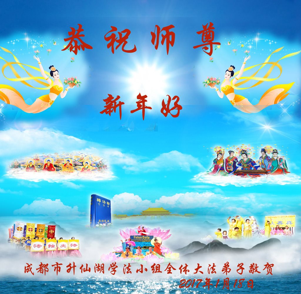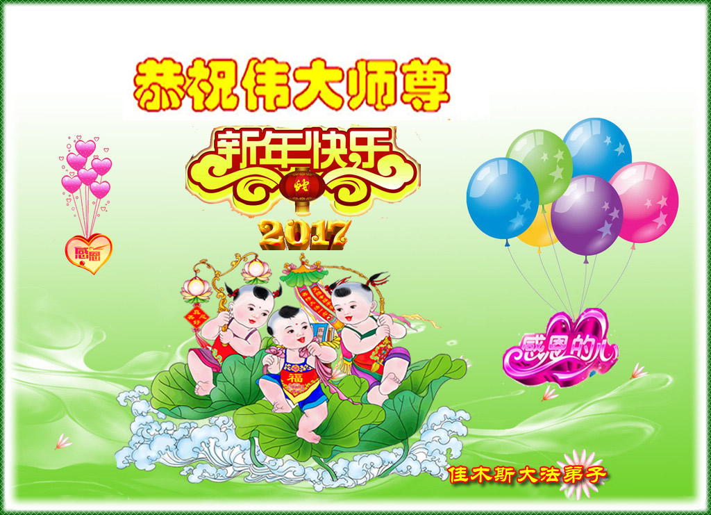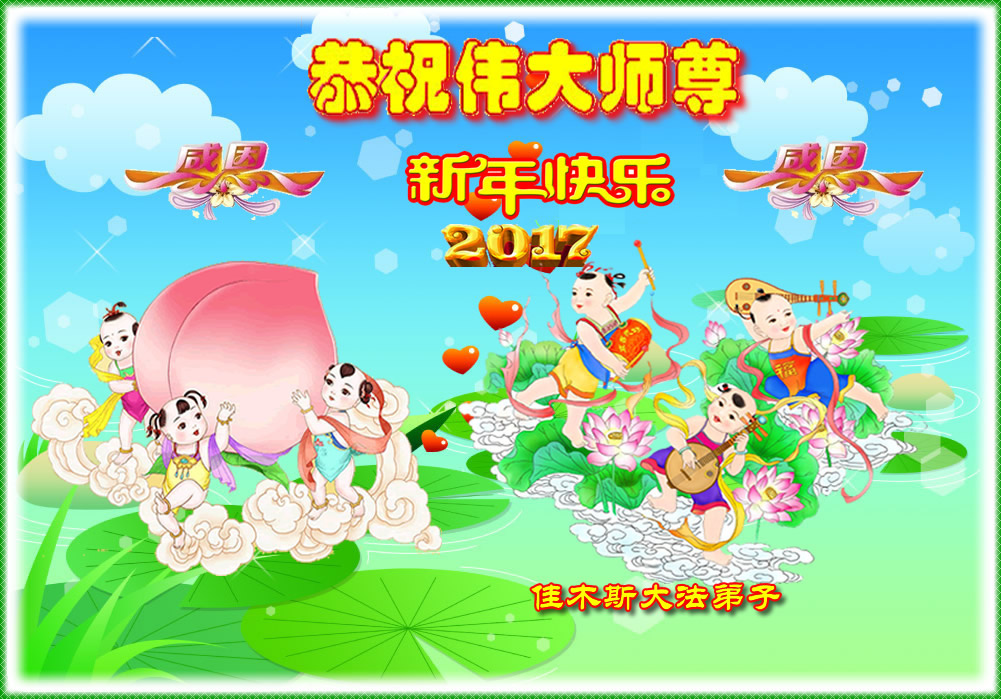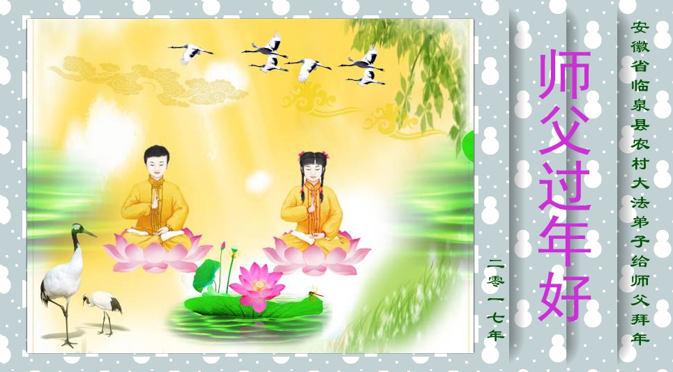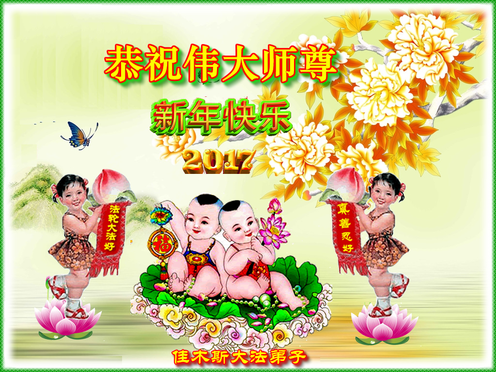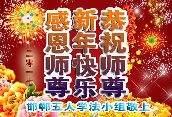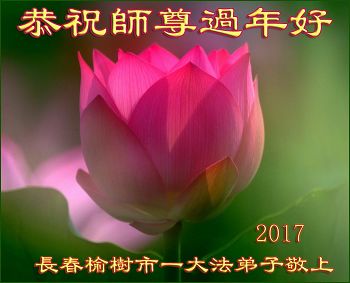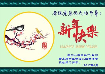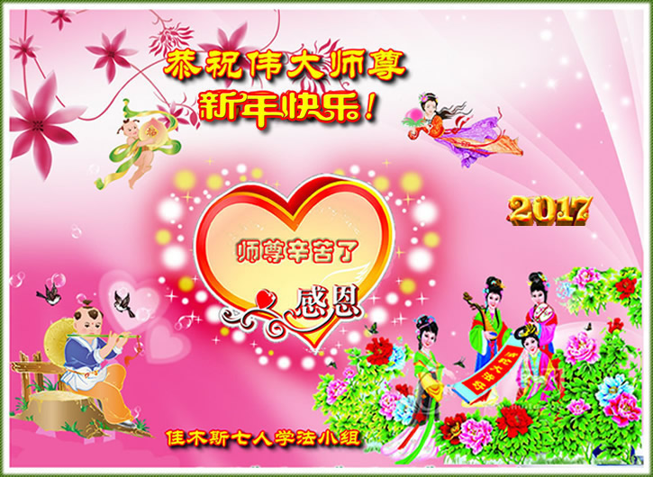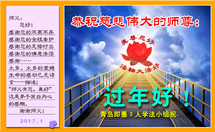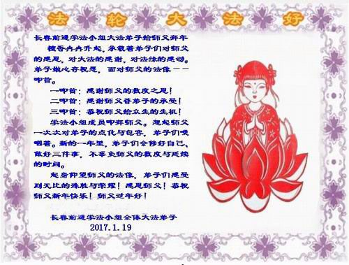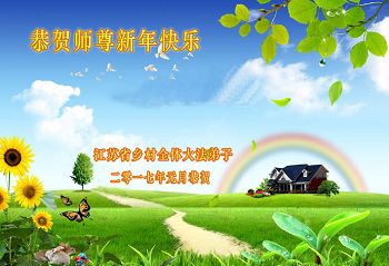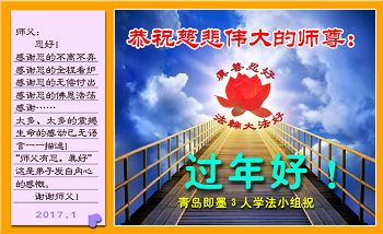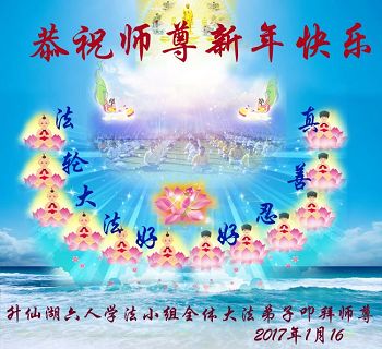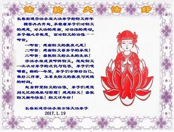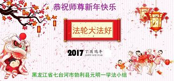 这是吉林省乾安县一学法小组大法弟子们在恭祝师尊2017年新年快乐的贺词,发自内心的表达大法修炼的美好。