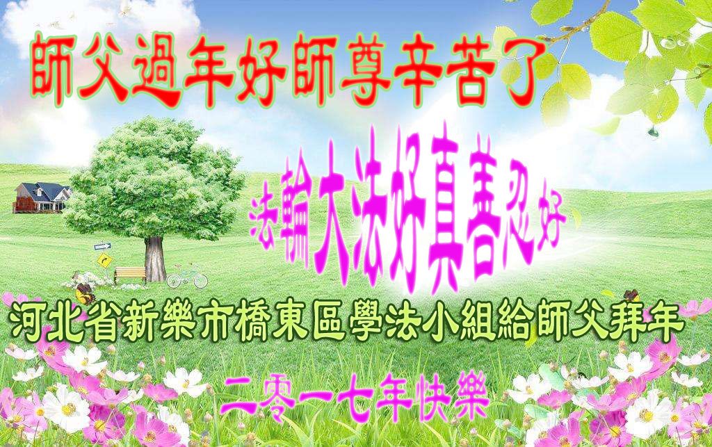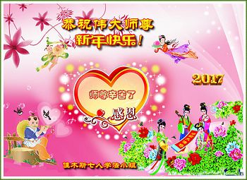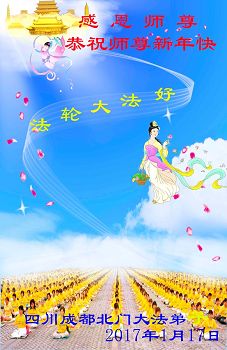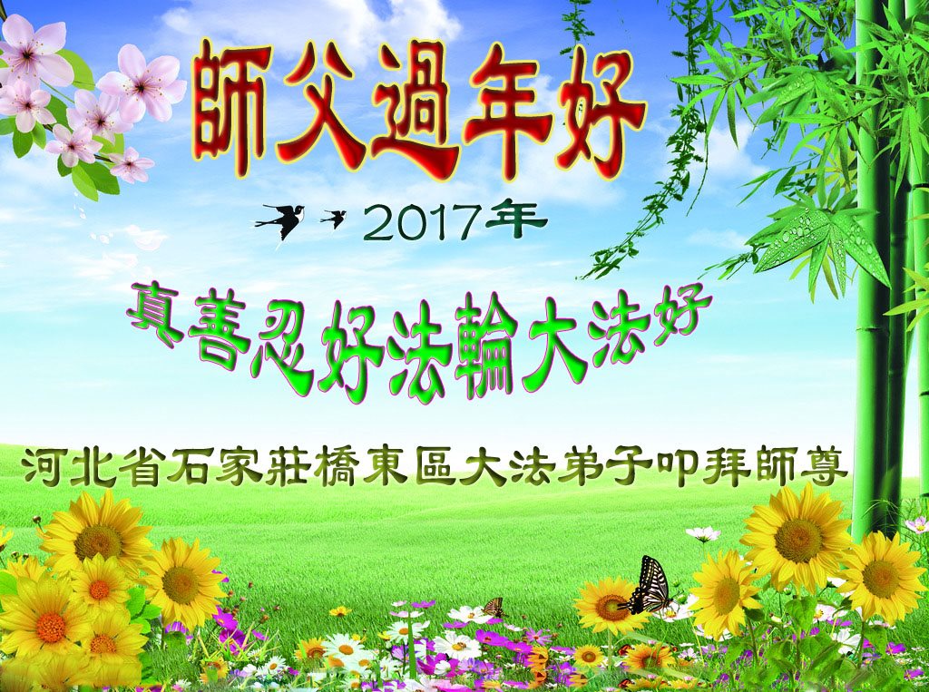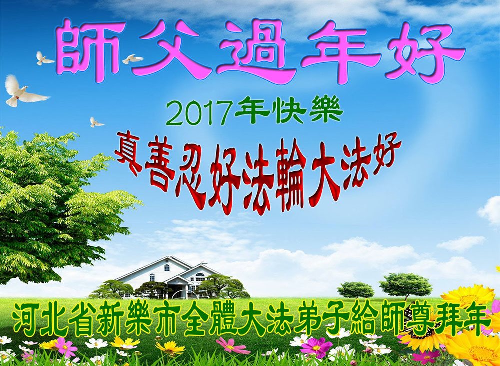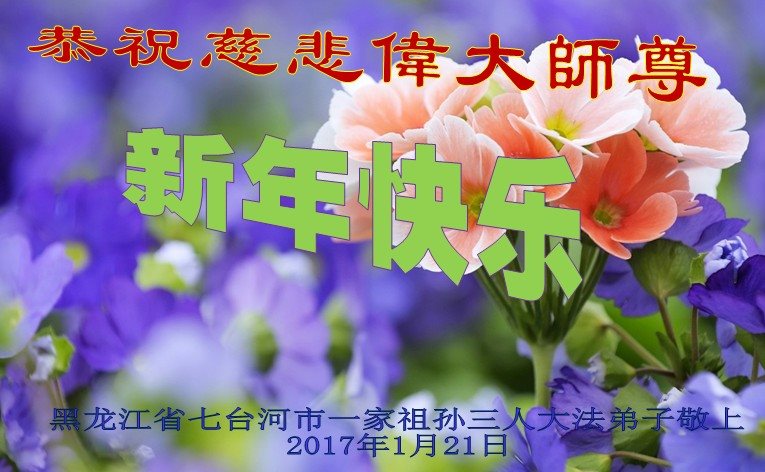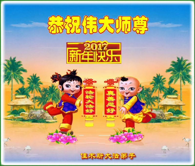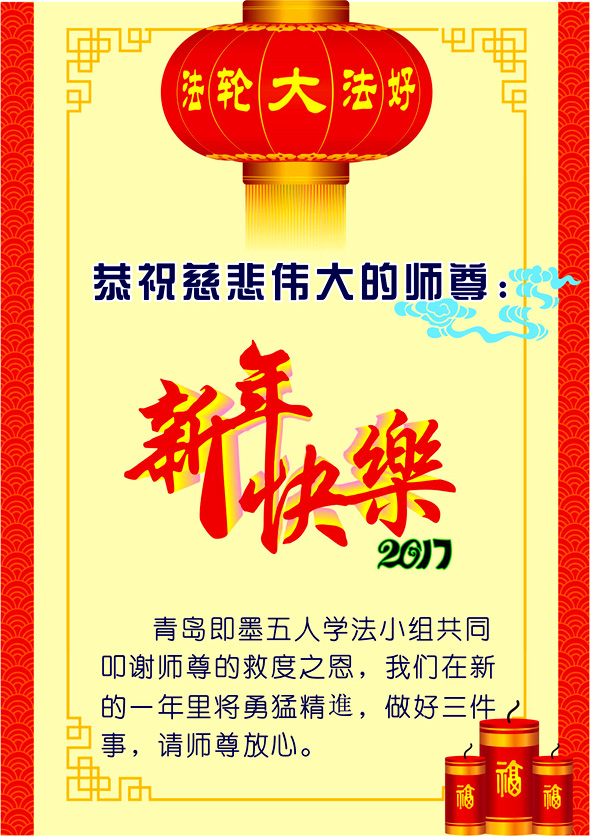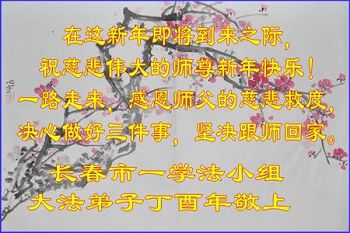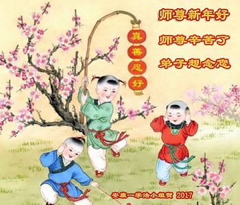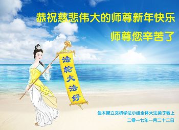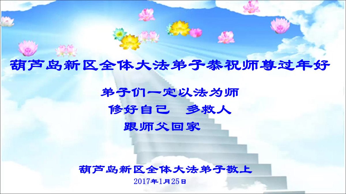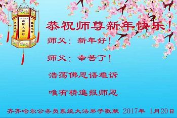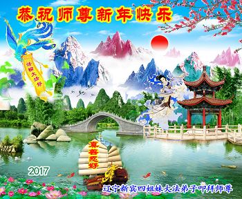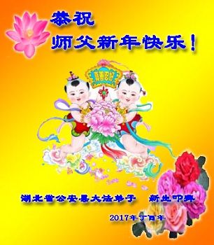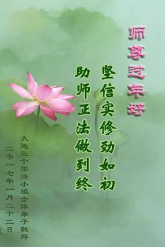 这是吉林省乾安县一学法小组大法弟子们在恭祝师尊2017年新年快乐的贺词,发自内心的表达大法修炼的美好。