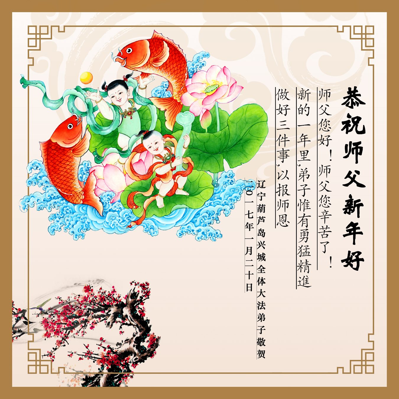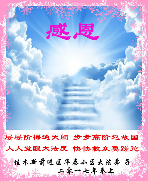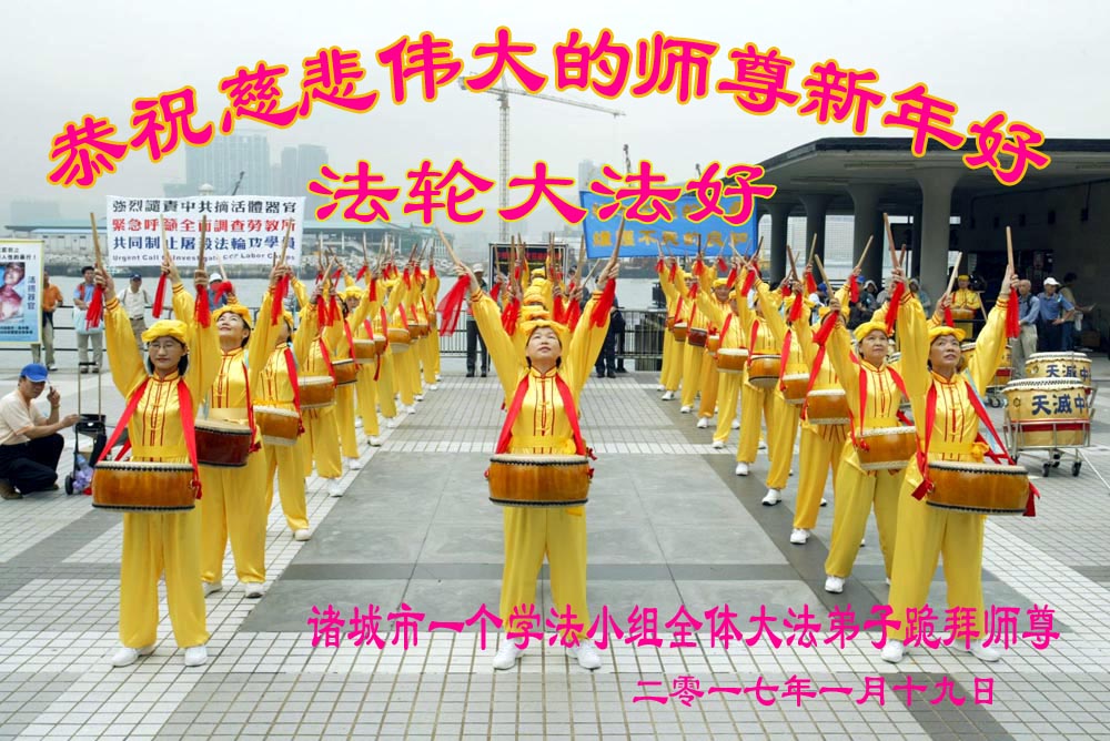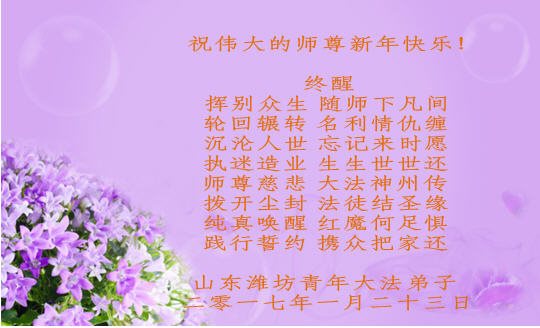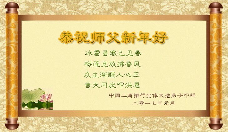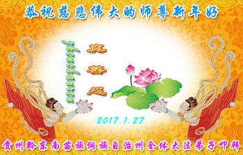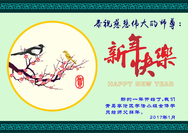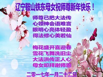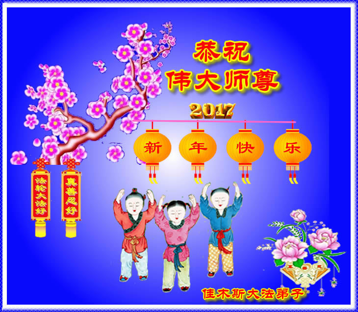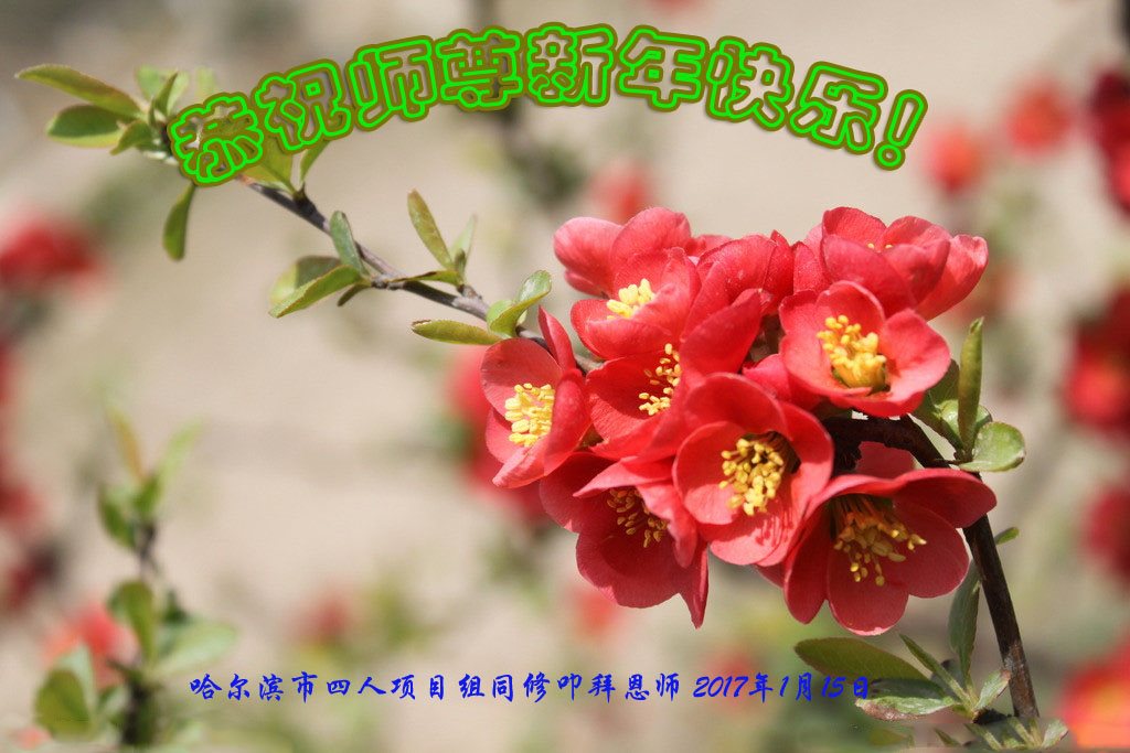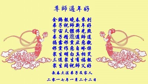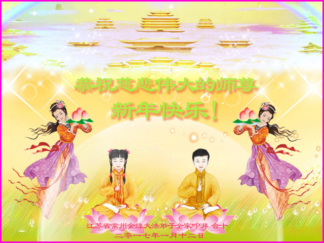 这是吉林省乾安县一学法小组大法弟子们在恭祝师尊2017年新年快乐的贺词,发自内心的表达大法修炼的美好。