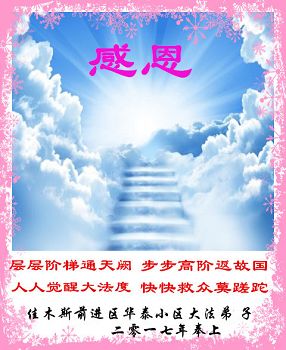 在此弟子衷心感谢师父的慈悲救度与看护、加持,使弟子能在这创世以来的万古机缘中有幸成为大法中的粒子,能够荣幸的跟随师父助师正法救众生。师恩浩荡,弟子无法用语言表达,唯有精進实修来感谢慈悲伟大的师父!