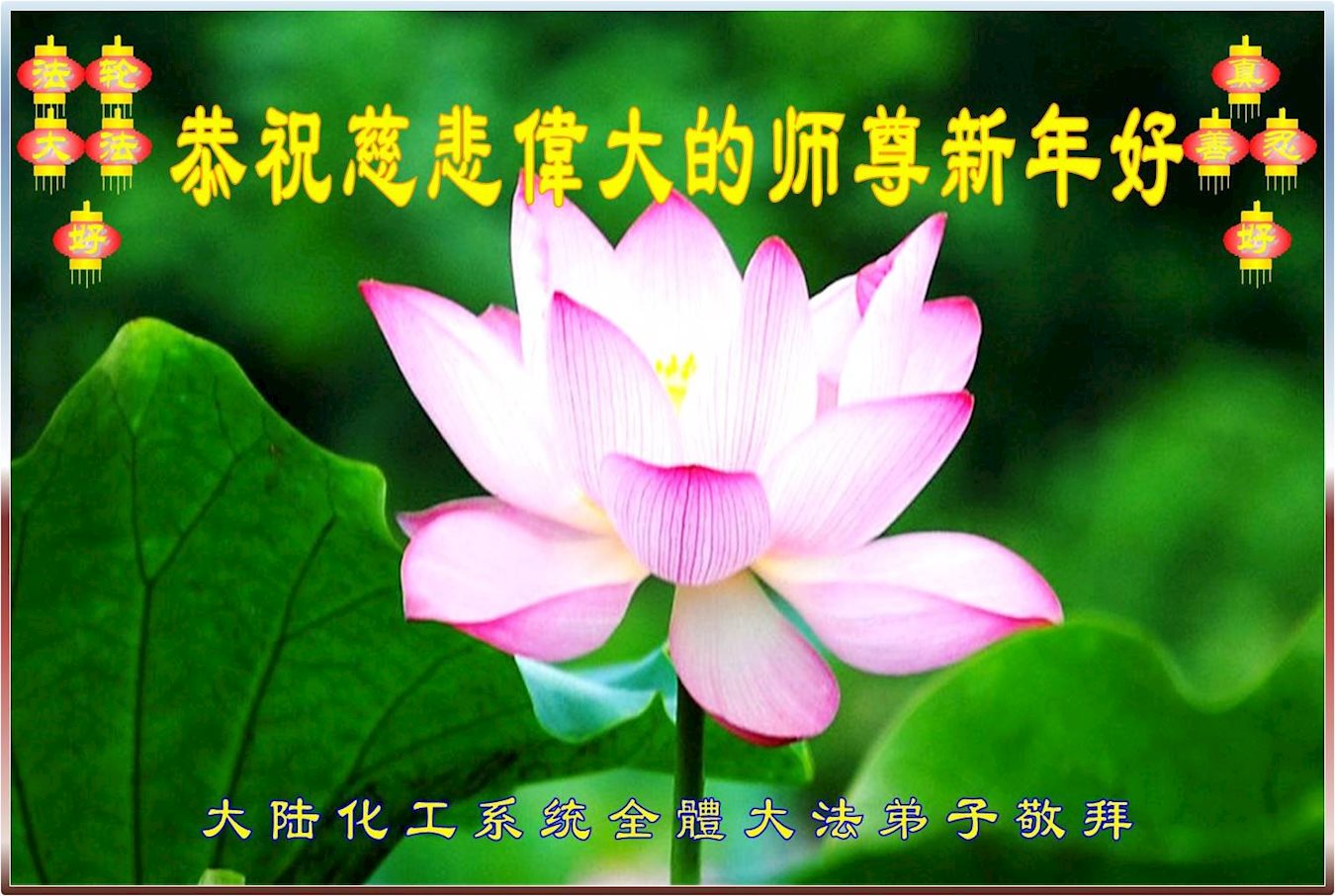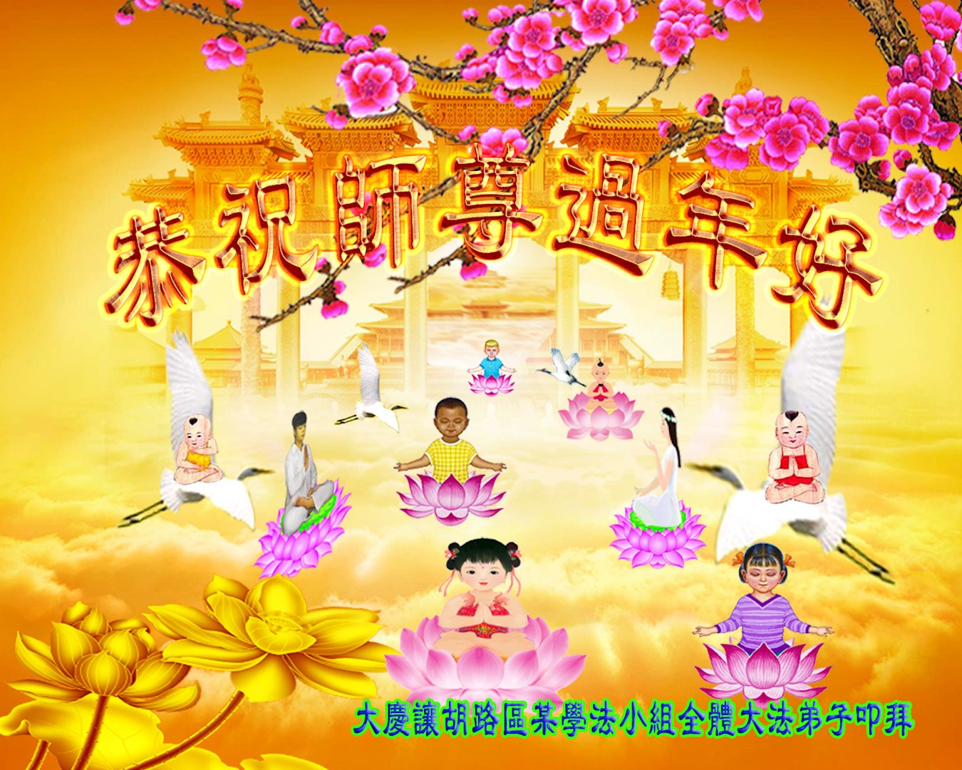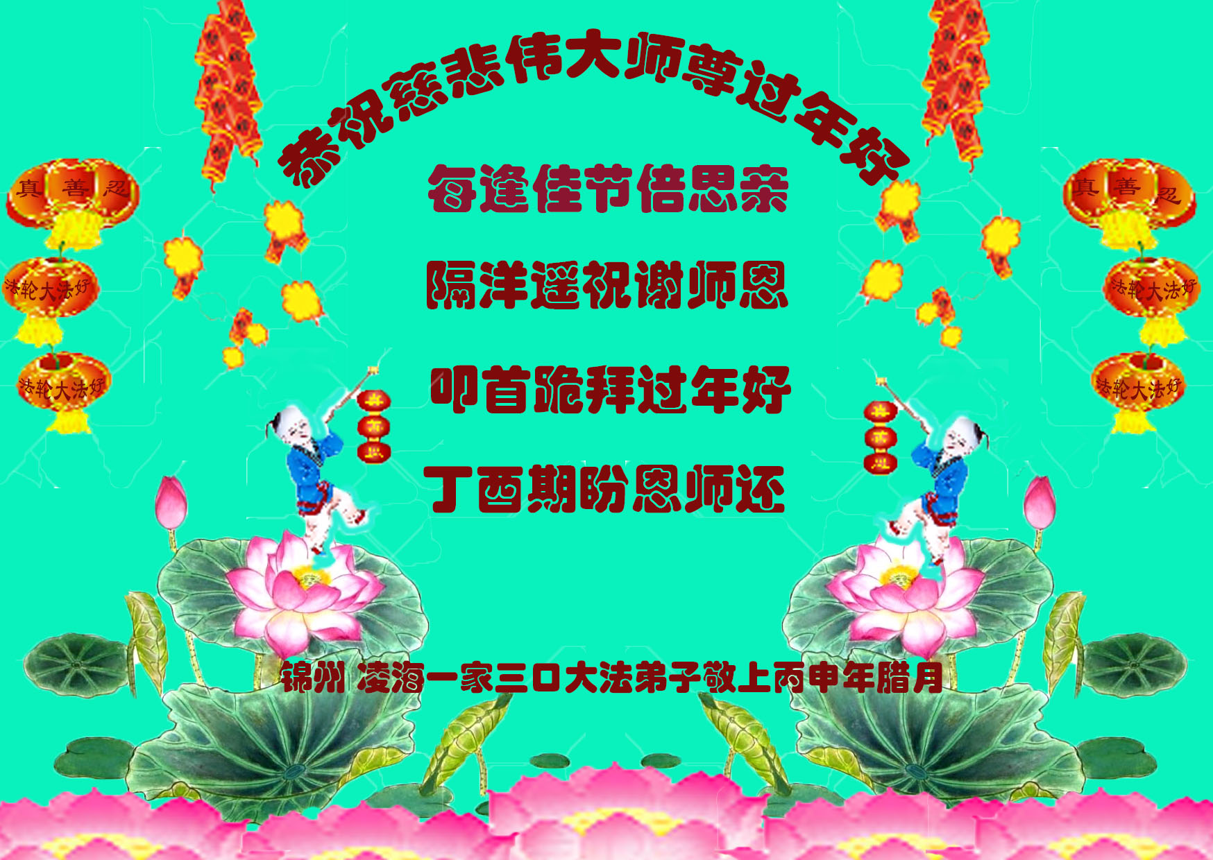 转眼又一年,师尊辛苦了!我们资料点的大法弟子想念师尊!向师尊拜年!恭祝师父新年好!拜谢师恩!