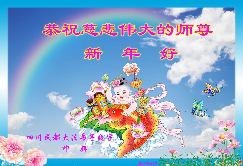 下面是更多的大法弟子用心写给师父的新年贺词、贺卡。