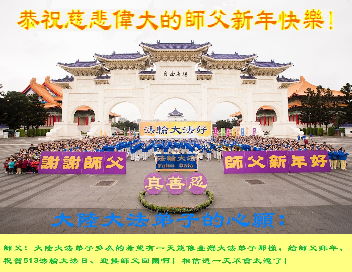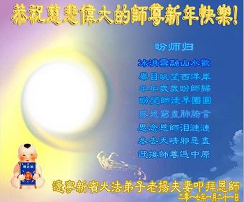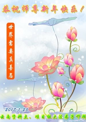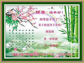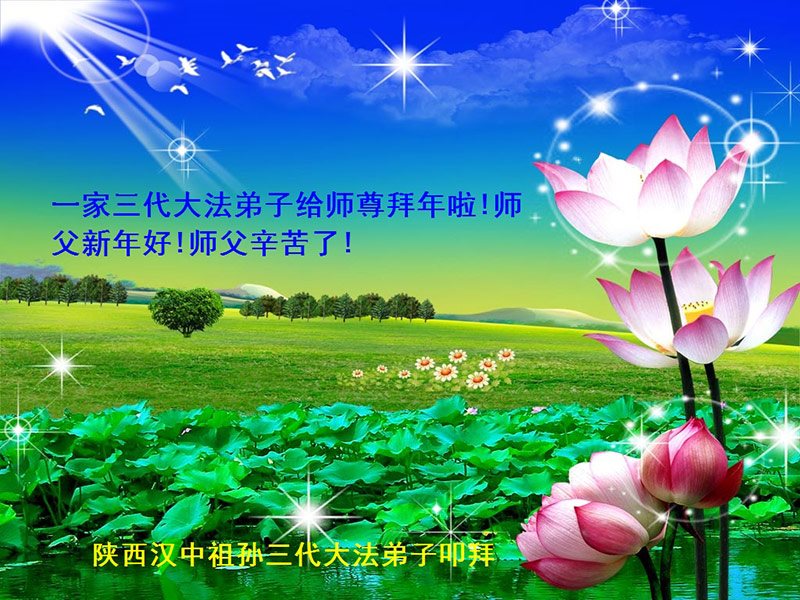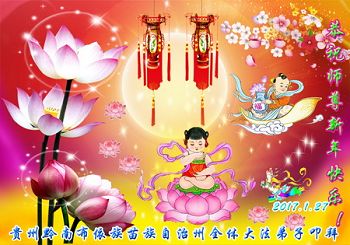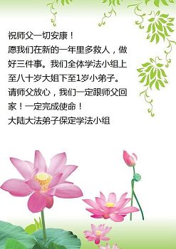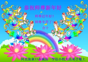 在此佳节到来之际,大陆各地自发成立的学法小组(共同阅读法轮大法师父著作《转法轮》)成员共同恭贺师父新年快乐!