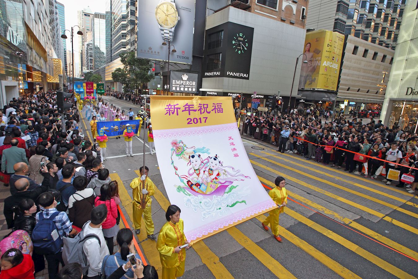 【明慧网二零一七年一月三日】(明慧记者郑语焉综合报道)迎接二零一七年的到来,全球各地都有法轮功学员恭祝法轮功创始人李洪志先生新年好。新年元旦伊始,香港法轮功学员展开全日的大型庆祝活动,海外部份法轮功学员陆续抵达香港共襄盛举。他们藉由表演节目、集体炼功和近千人的集会游行,向李洪志先生敬贺新年。真善忍的美好触动着观看的民众,有中国大陆游客赞赏法轮功真善忍精神,值得每个人学习。