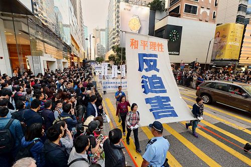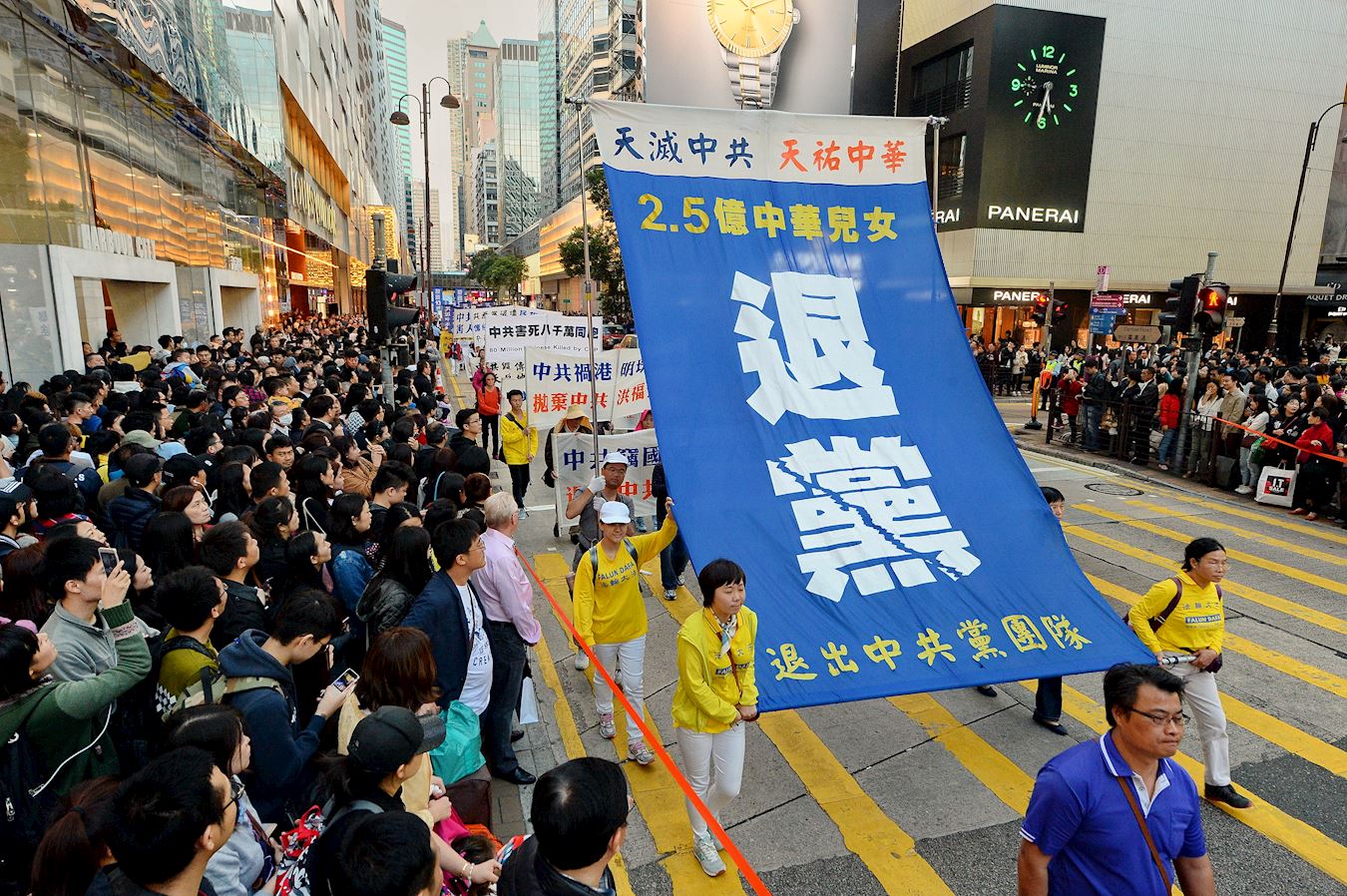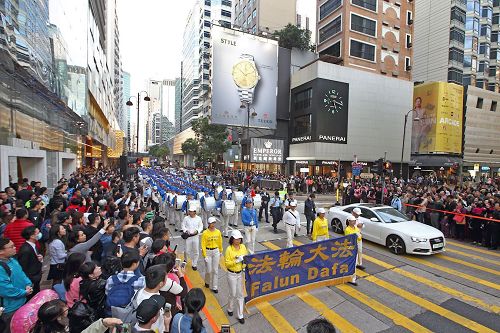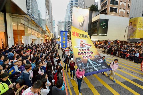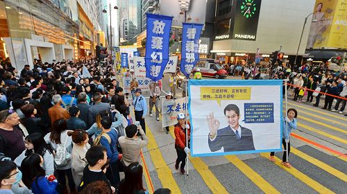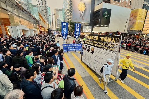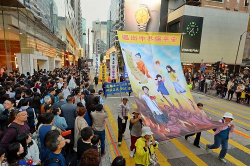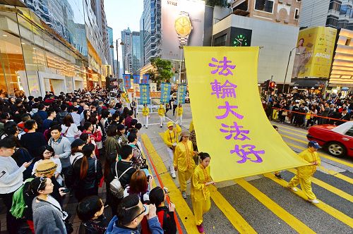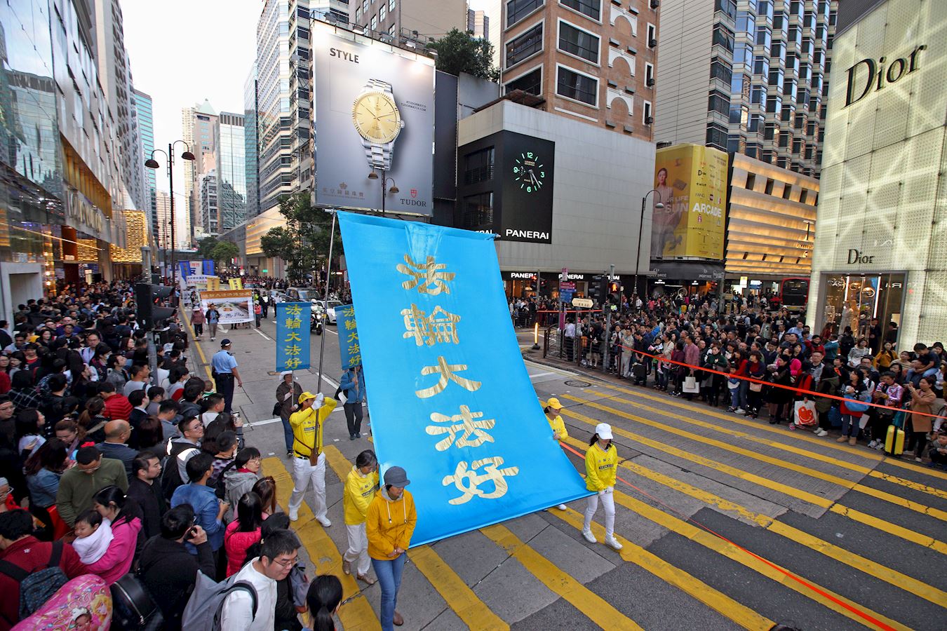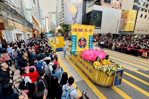 法轮功学员透过游行展示法轮大法的美好,揭露中共的迫害,希望更多人了解真相,彰显正义良知,走向光明的未来。游行队伍分为“明真相 得吉祥”、“和平理性反迫害”、“扬正气 擒恶狼”、“天灭中共 三退是福”、“法办元凶 结束祸港”、“法轮大法好”等六大阵列,途经九龙多个闹市,吸引许多中外民众驻足观看。不少大陆游客表示深感震撼,支持法轮功真善忍的精神。
