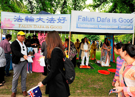 一月二十六日,墨尔本法轮功学员参加了在市中心国王公园举行的一年一度大型国庆日游园会,向游客展示五套功法、义务教功,吸引很多民众驻足。