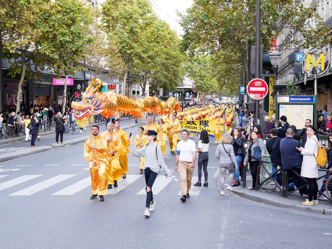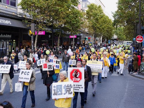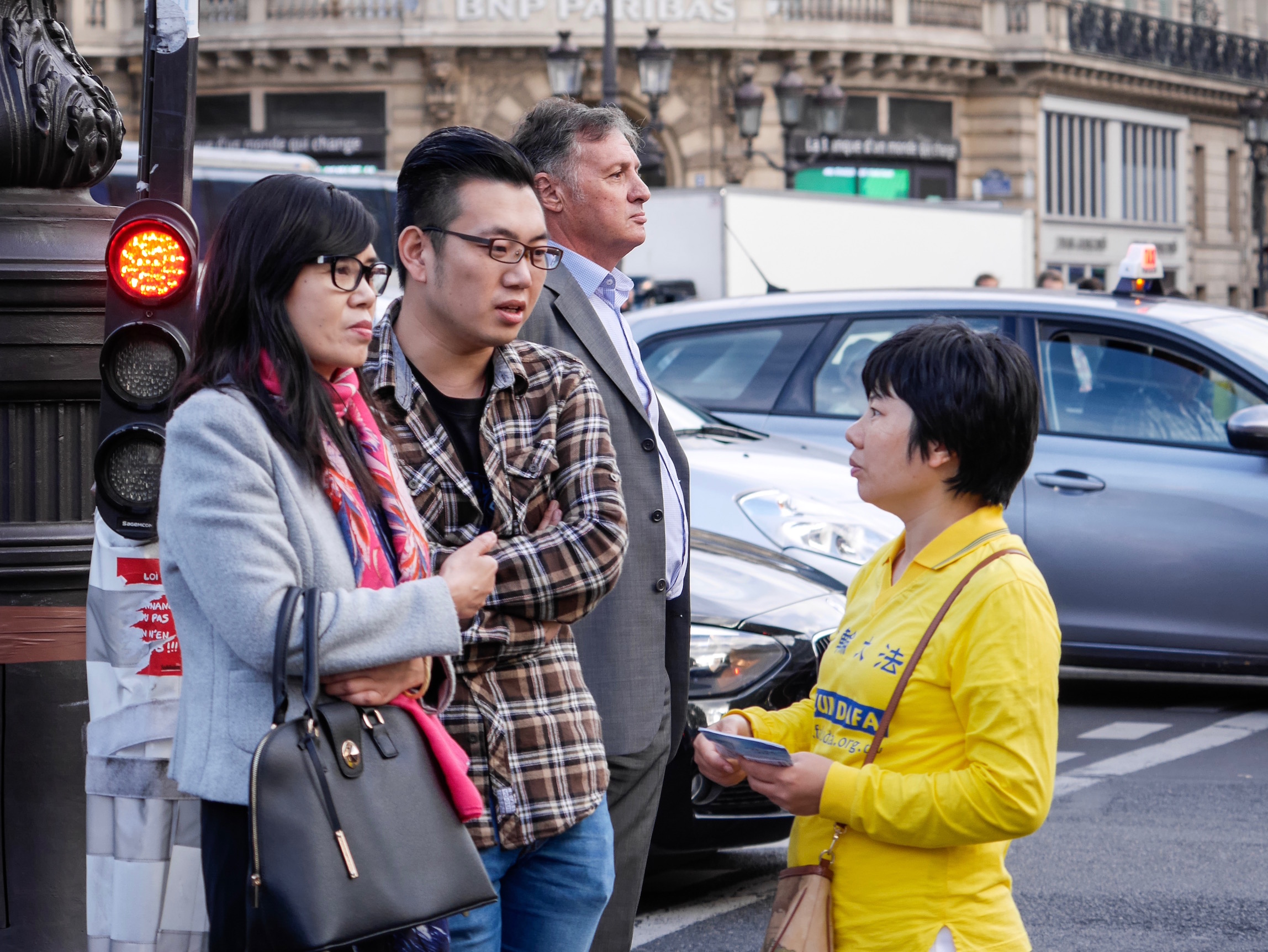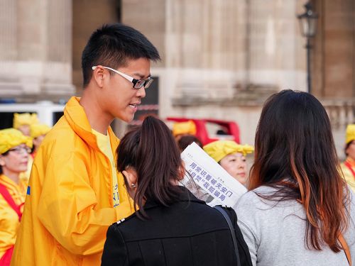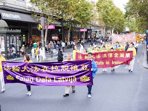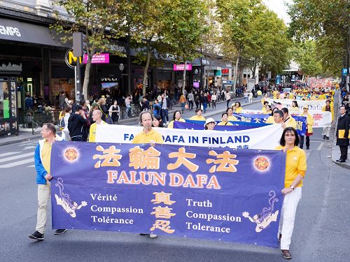 时值周末,游行所经之地人流川流不息,沿途民众有些已经听说过法轮功及中共迫害法轮功的真相,还是有很多人头一次听闻法轮功和中共对法轮功的迫害,尤其是中共活摘法轮功学员器官的罪行,更是令法国民众和来自各国的游客感到震惊,人们纷纷表示声援法轮功学员的反迫害活动。法轮功学员的游行队伍让连续经历了数次恐怖袭击的巴黎民众感受到平和与放松,人们看到了不同年龄、不同国度、不同肤色的法轮功学员展现出法轮功的美好,露出了高兴的神情。