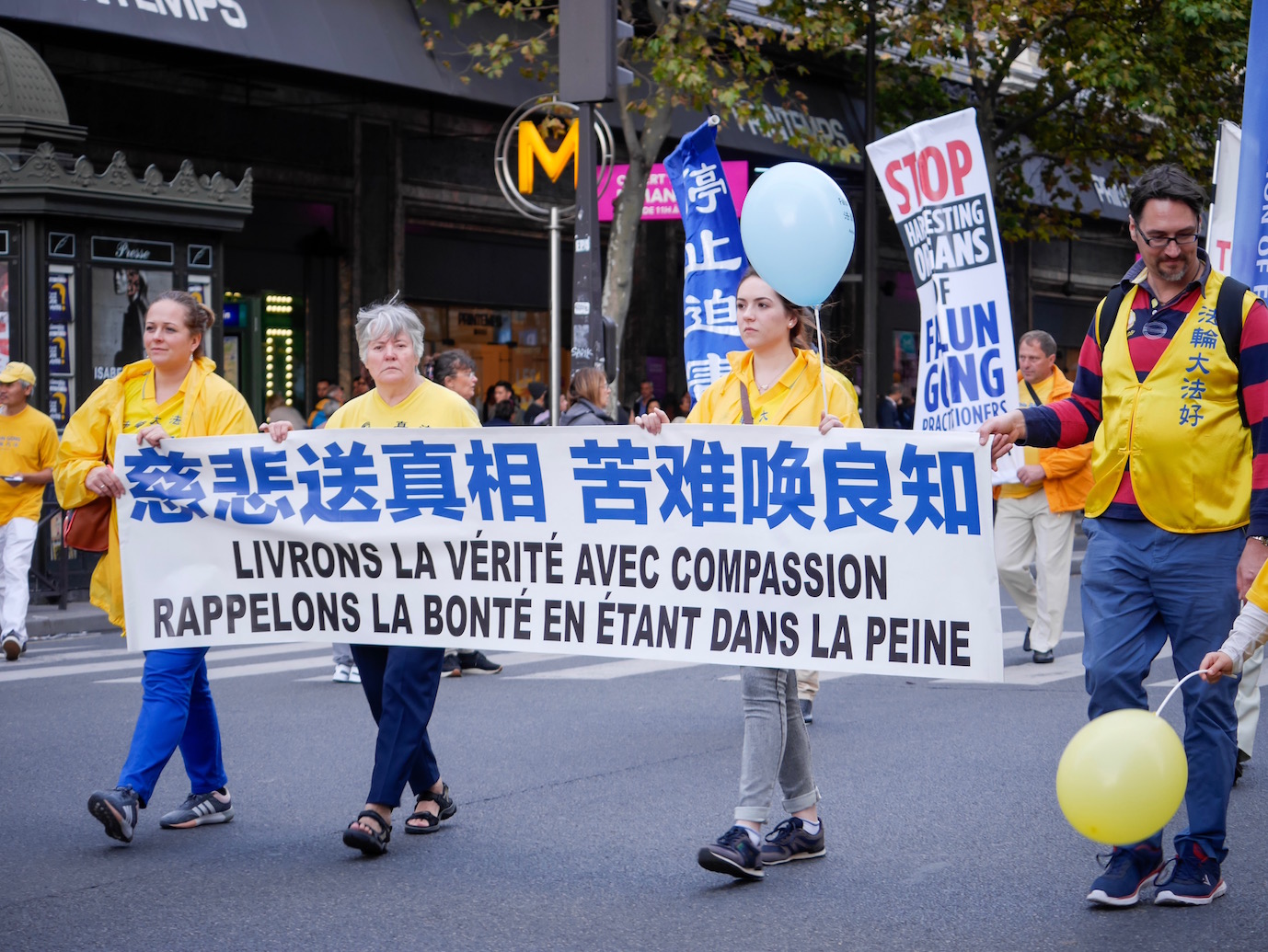 Sylvie对法轮功学员信奉的真、善、忍表示认同,“这些价值应该是正常的价值,很可惜现在需要通过游行来告诉大家。的确法国人很少知道这事。”