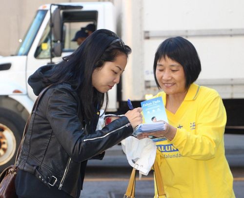 '图13:了解了真相的韩裔青年Heard签名支持法轮功反迫害'