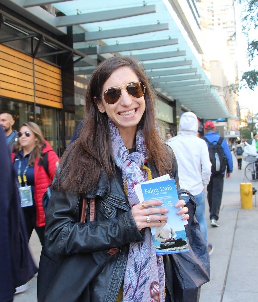 Juliette Duprey是安大略电视台(TVO)的电视制片人,今天从活动现场经过。Duprey女士第一次听说法轮大法。当了解到法轮大法是教人按“真善忍”法理去做好人的功法,及现在已经弘传世界一百多个国家而只有在中国被中共迫害时,Duprey女士说:“自由是每个人都应该享有的权利,在中国人们不能够自由地信仰法轮功并被迫害,这实在让人不能理解。我拿了两张请愿卡片,一张是我要签的,另一张是让我先生签的,他也肯定会签的。人们应该有自由做他们想做的和炼他们想炼的。”