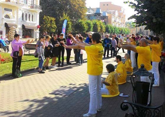 金秋时刻,每到周末,俄罗斯基斯洛沃茨克市法轮功学员向当地市民介绍法轮大法(又称法轮功),并揭露十八年来中共对法轮功的残酷迫害。
