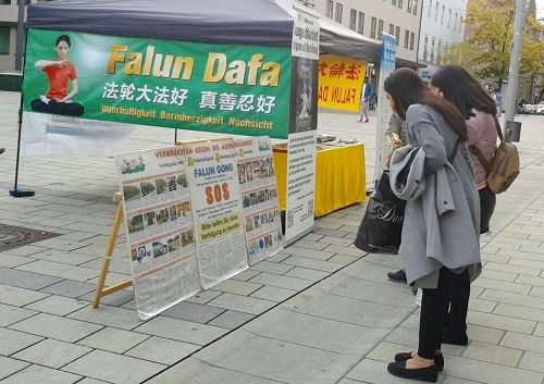 慕尼黑法轮功学员于二零一七年十月二十一日在塔尔大街(Tal)举办揭露中共迫害法轮功及活体摘取法轮功学员器官的活动。活动吸引了当地民众和游客的关注,除了德国民众之外,还有很多各国民众也纷纷签名声援法轮功学员。