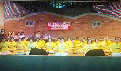 十月一日,台北市延平里举办庆祝中秋佳节晚会活动。台北法轮功学员在舞台上展示功法,赢得在场观众们地热烈掌声。