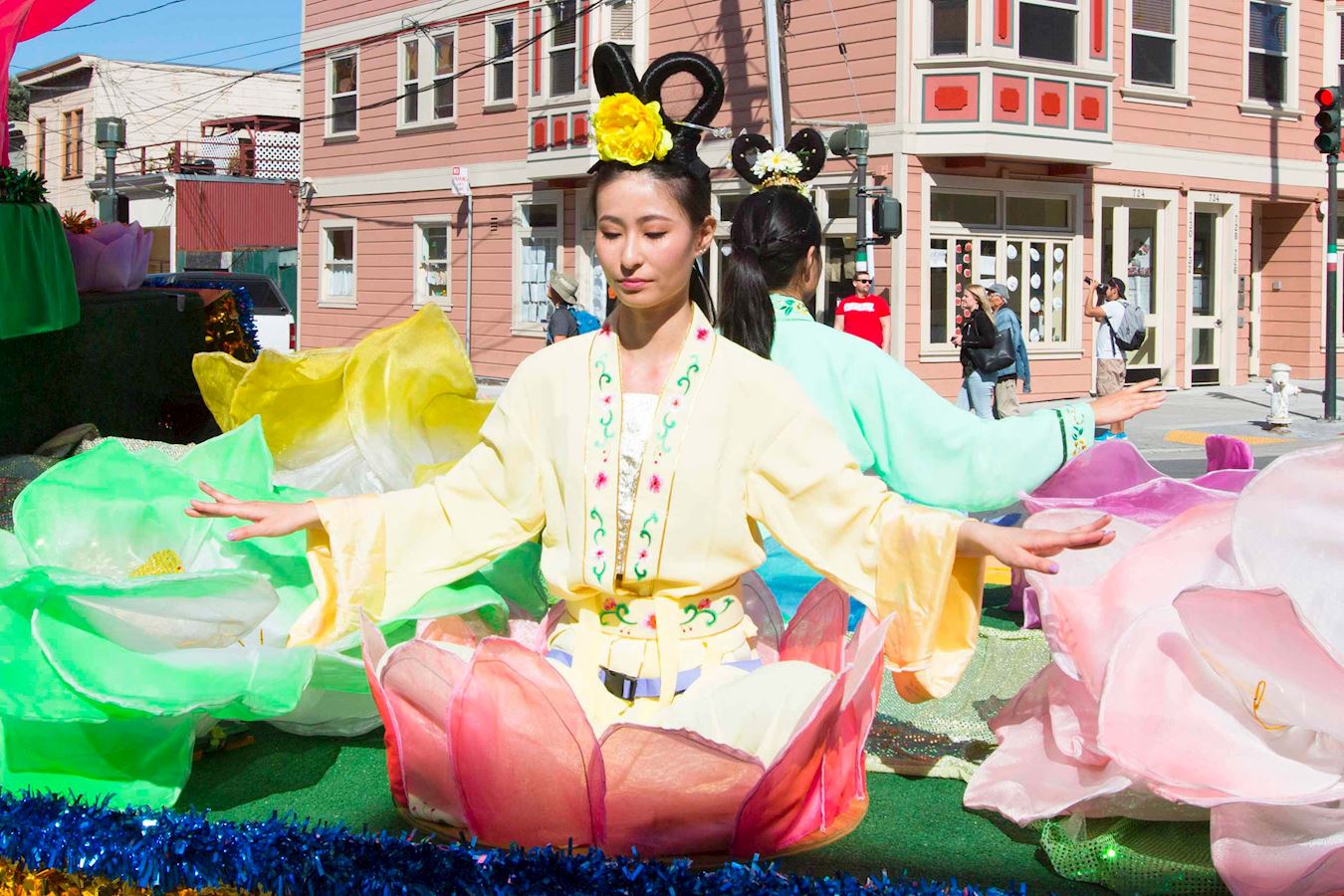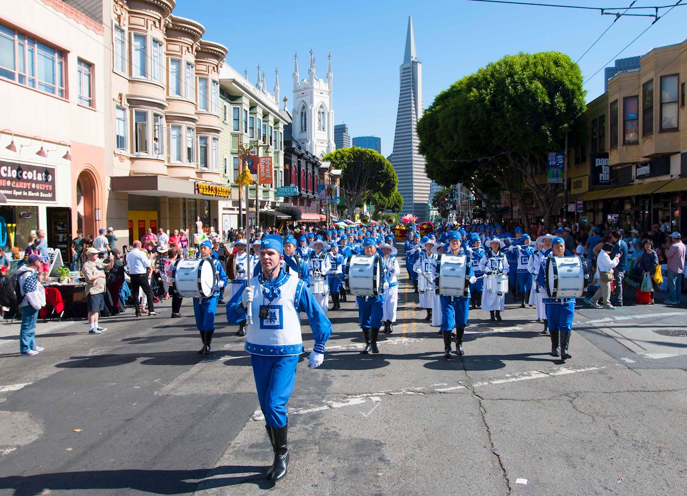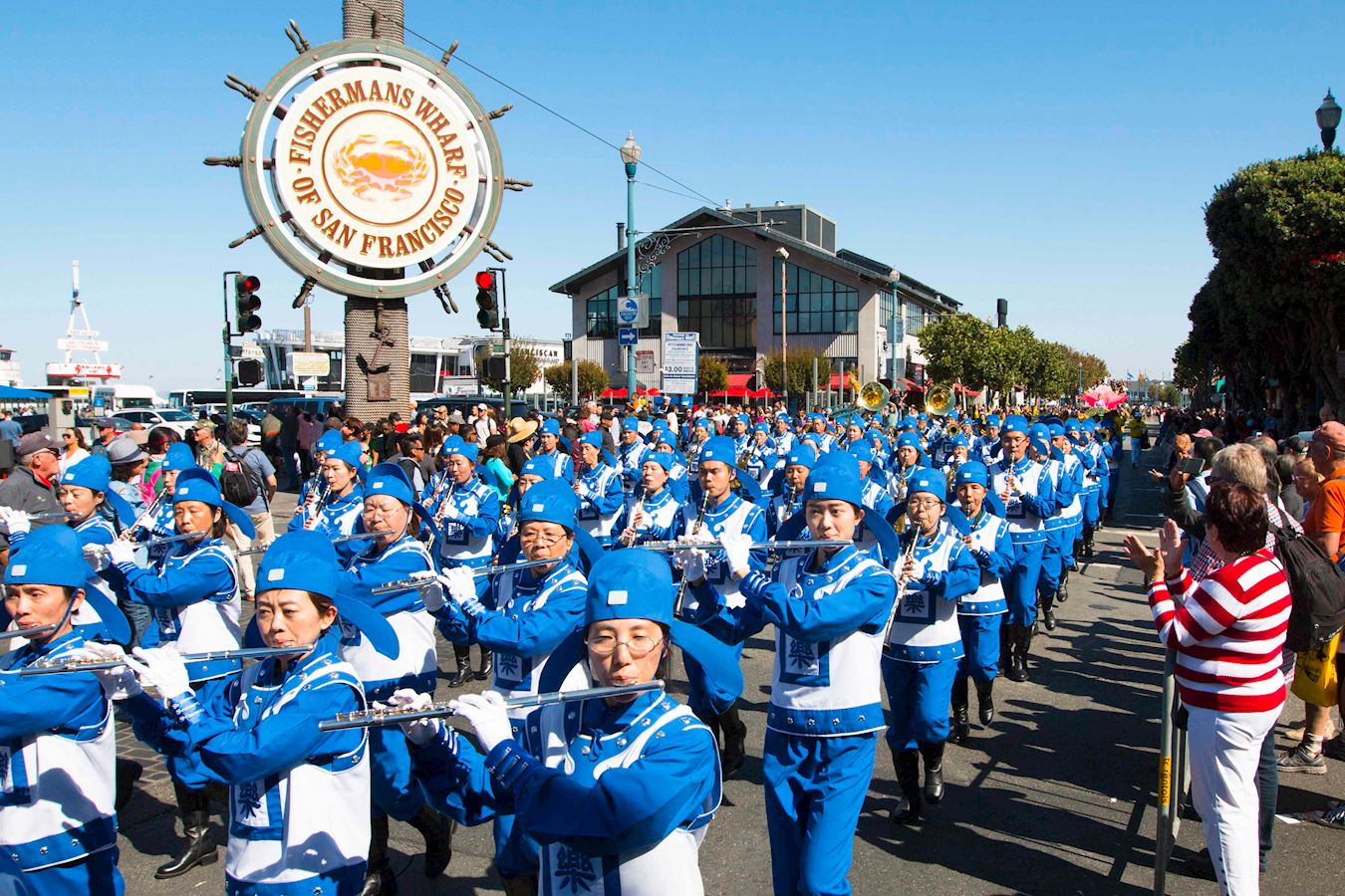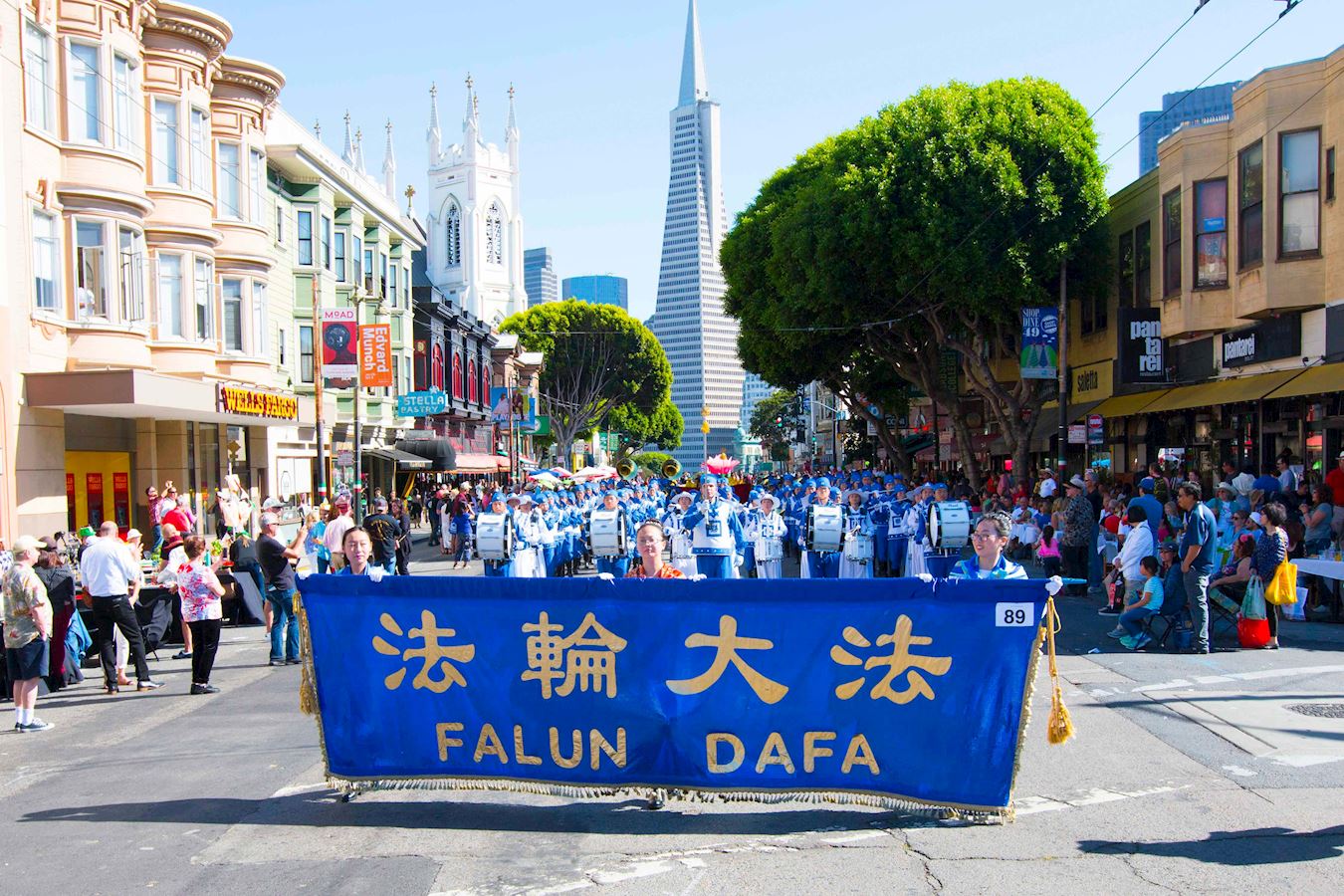法轮功学员的队伍有美西天国乐团、炼功队和花车。主办单位表示,法轮功学员的队伍是今天游行中最大的队伍之一,他们所到之处受到观众的喜爱。