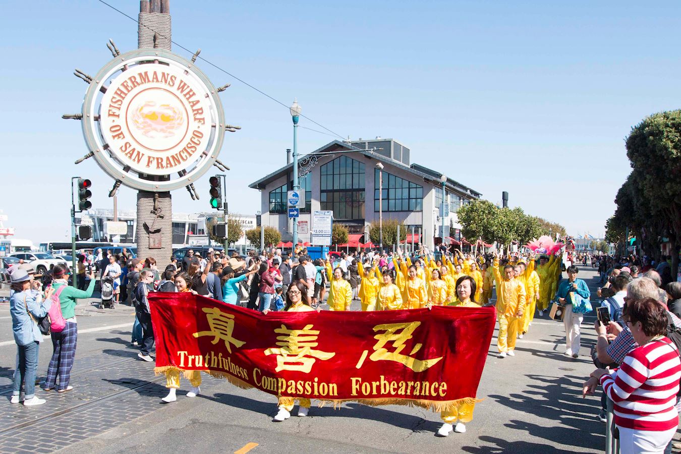 从乔治亚州到旧金山旅游的Rochelle Johnson表示,她很喜欢法轮功学员的队伍。她说:“这个队伍色彩非常好看,我尤其喜欢法轮功的真、善、忍原则。”当她了解到中共对法轮功的迫害后,她说,“这太恐怖了,就因为信仰,他们被关进监狱、受到酷刑折磨。每个人都应该有信仰自由,中共这样做,等于剥夺了民众的人权。我们应该团结起来,阻止这种暴行。”