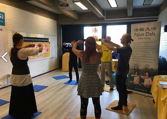 多年来,法轮功学员一直参加芬兰精神信仰领域展会,向喜欢探索精神领域的当地民众介绍功法。
