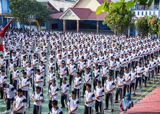 法轮功学员来到印尼巴淡岛高中,向数百名学生及老师介绍以“真善忍”为原则的性命双修功法——法轮功。720名学生和教师有幸学习了法轮功。