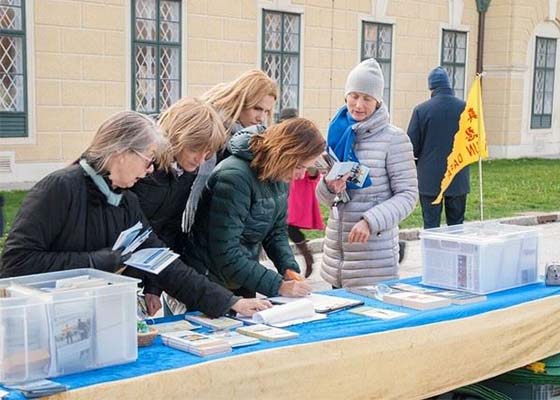 十一月十一日,奥地利法轮功学员在首都维也纳著名的夏宫举行信息日活动,向来自各国的游客和当地民众揭露中共对法轮功学员长达十八年的残酷迫害。