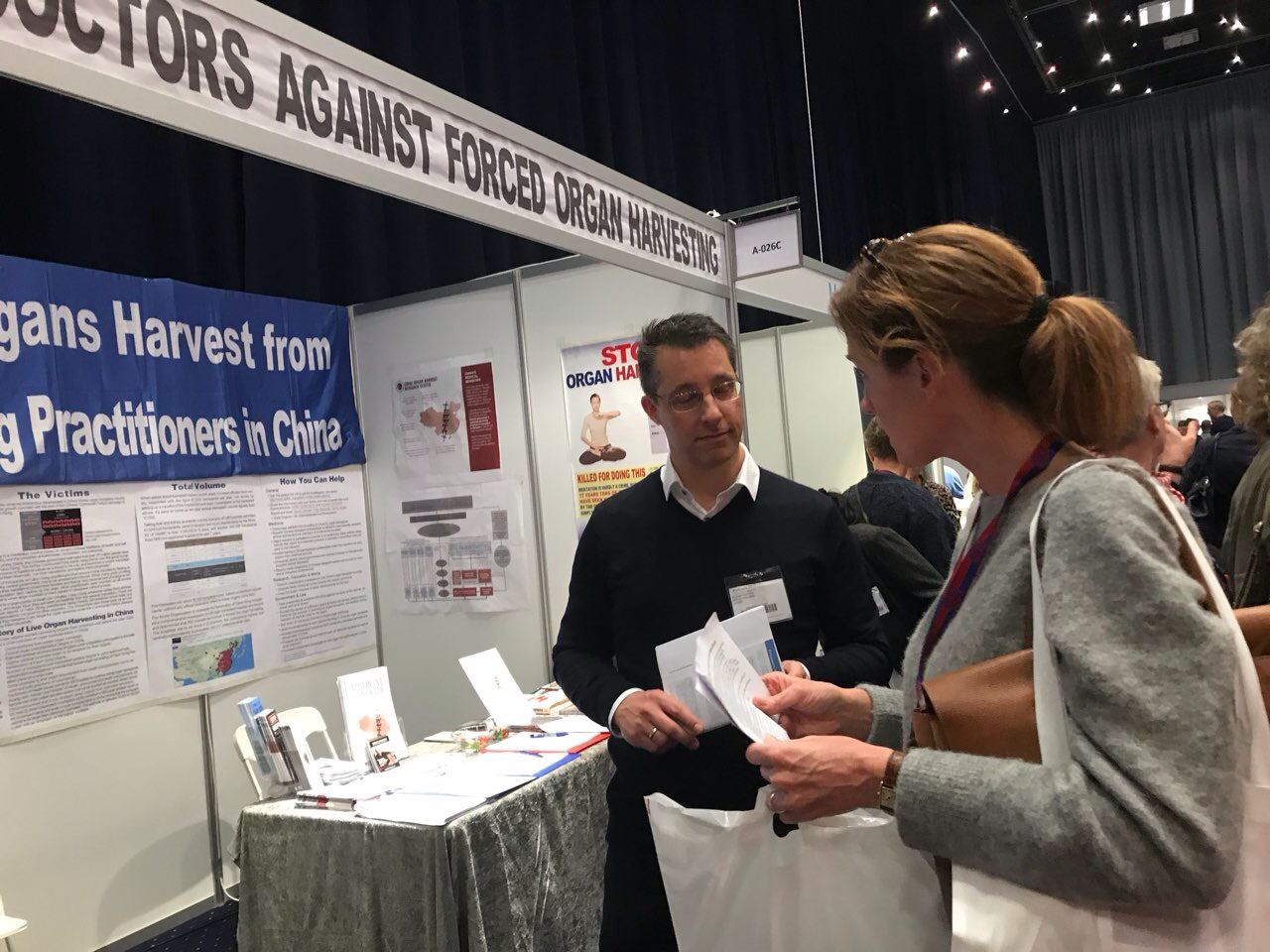 很多医生在震惊之余,希望进一步了解详细资讯,在看过对中共活摘器官的调查资料和报告之后,有的医生马上签名,有的第二天来签名,还有的除了自己签名支持外,还特地带朋友和同事到展位拿资料和签名。