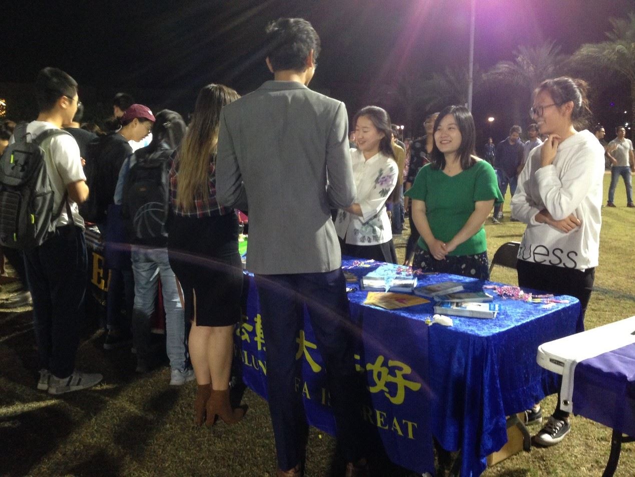 在当晚的活动中,前来摊位了解法轮功真相的学生络绎不绝,其中包括一些从中国大陆来美的访问学者。一些善良的学生在了解到法轮功学员在中国大陆遭受到中共的残忍迫害的真相后表示愤怒,希望这一迫害可以快点结束。