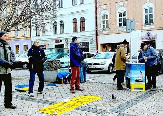 国庆日这天和十一月十八日,法轮功学员在中部旅游城市Banská Bystrica的Stephen Moyses广场上,举办了征签反迫害的信息日活动。