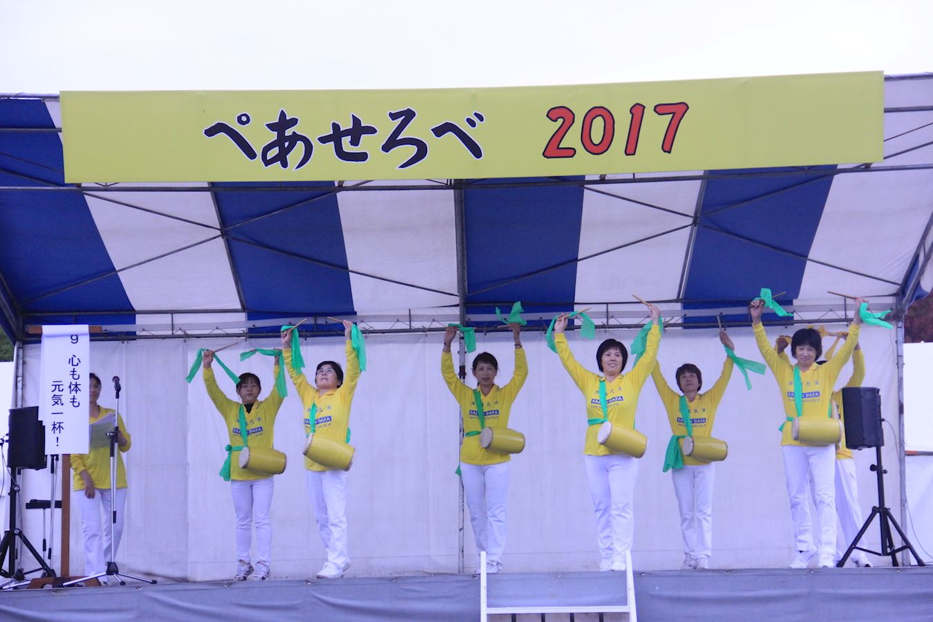 活动期间,法轮功学员们还在舞台上展示了五套功法,祥和的功法演示,使到场的观众展开笑颜,很多人跟着舞台上的功法一起学炼。随后,学员们还表演了欢乐的腰鼓舞。
