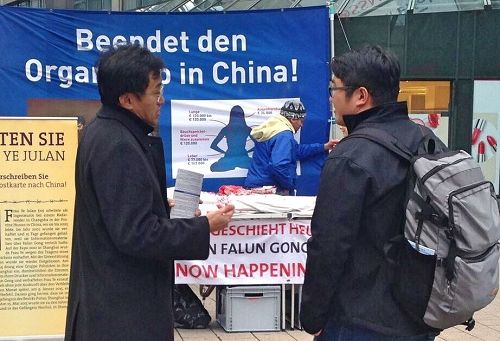 三位年轻女士径直走到展位前问:“法轮功是什么,为什么中共要迫害法轮功?”得到答复后,其中一个说:“那不就是一种打坐修行的方法吗?那为什么要迫害他们呢?”她指了指身后正在演示功法的几个法轮功学员,又说道:“我自己有时候也会打打坐,对放松神经非常有好处。”法轮功学员告诉她们,中共担心丧失对人们思想的控制,禁止人们有真正的信仰,为此他们居然活体摘取法轮功学员的器官牟取暴利。她们都惊呆了,在反对活摘和呼吁制止迫害的征签表上签名后,感谢法轮功学员把真相带给她们。