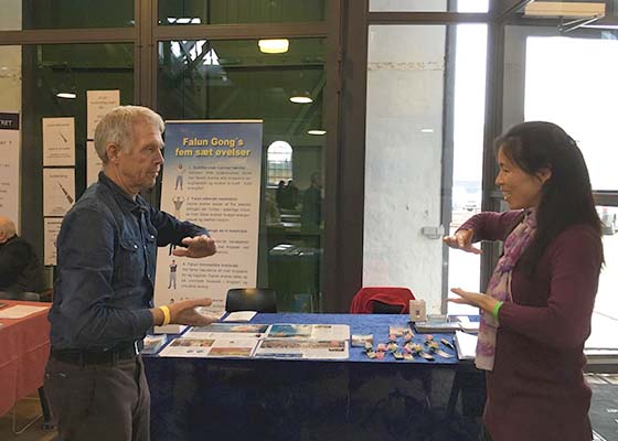 十一月三日至五日,丹麦法轮功学员在首都哥本哈根“神秘宇宙”博览会上向人们传播法轮功真相。许多人驻足了解真相。