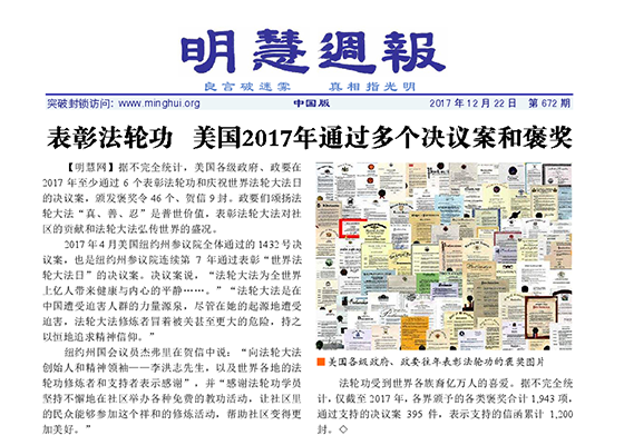 表彰法轮功 美国2017年通过多个决议案和褒奖