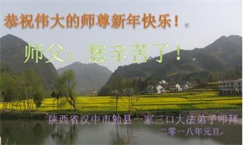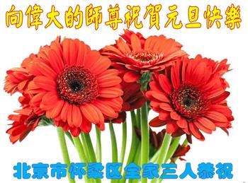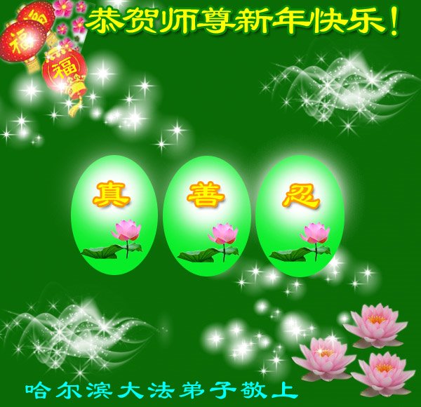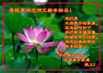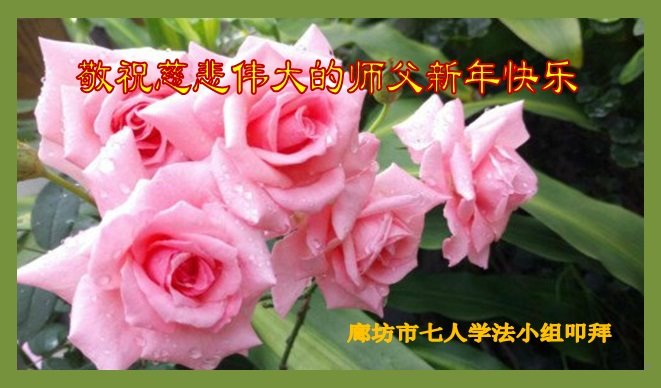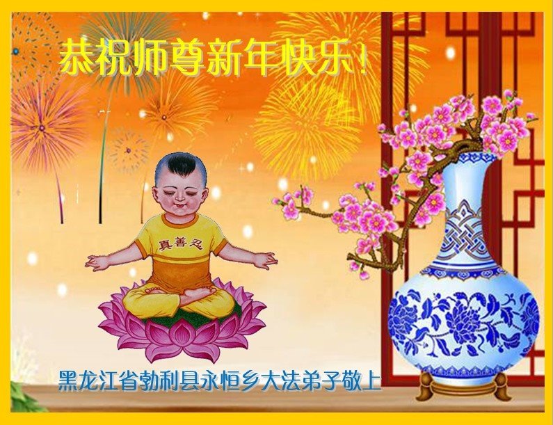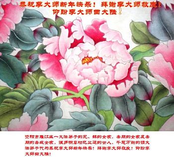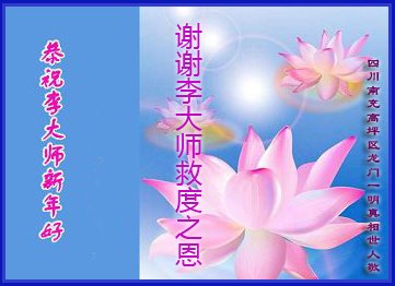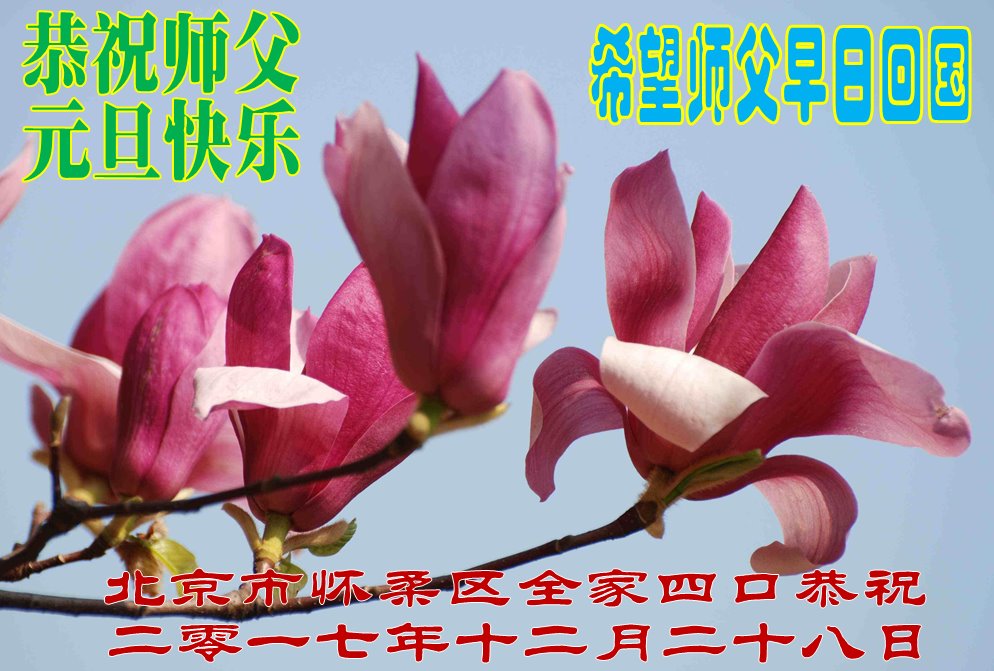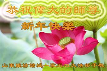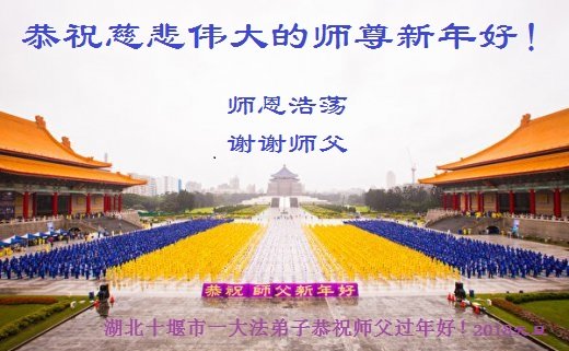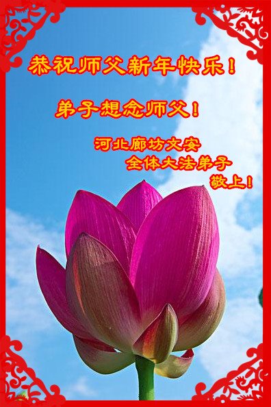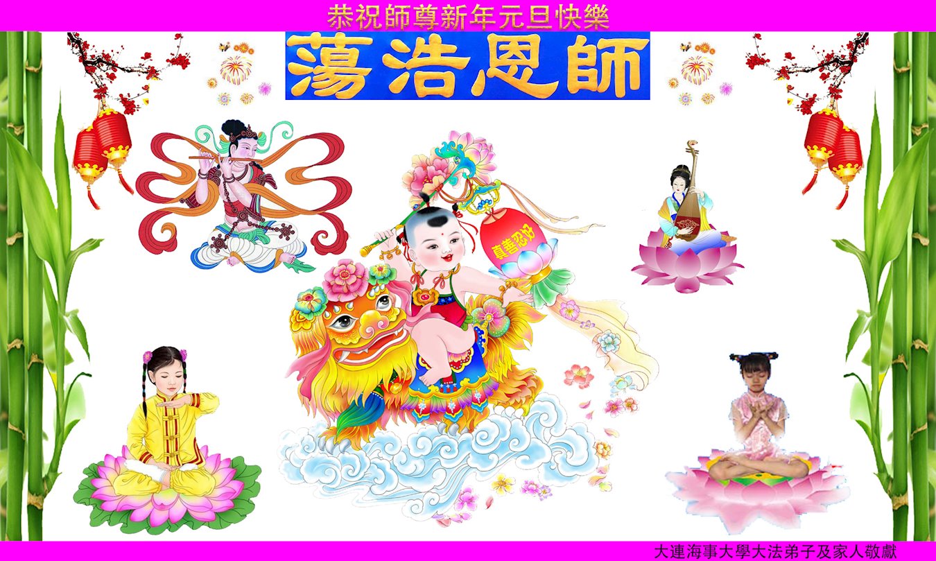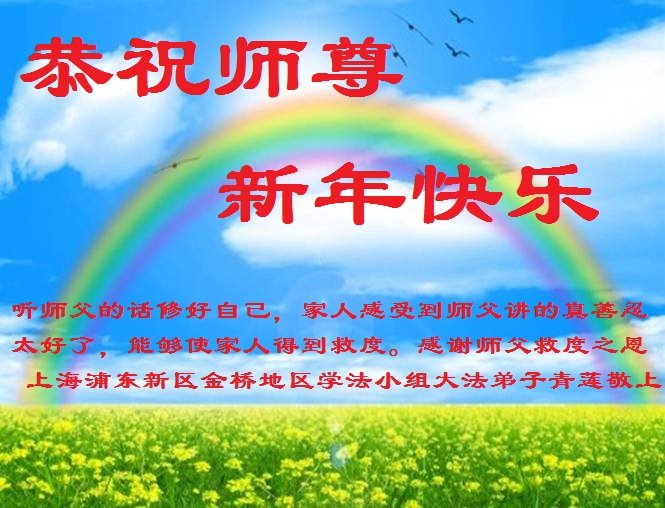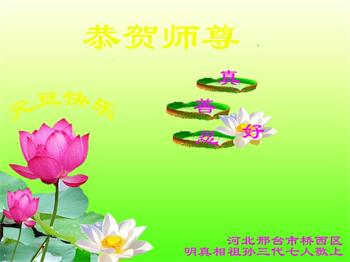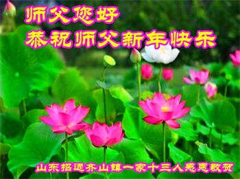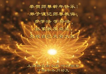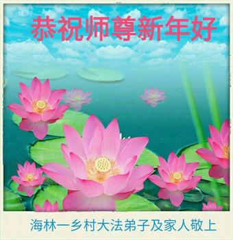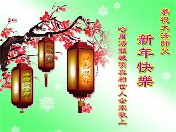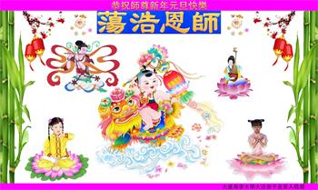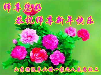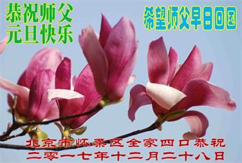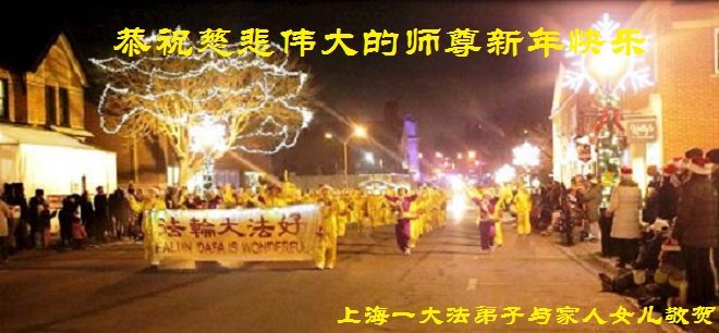 为此在新年到来之际,我们全家七口人心怀无比的恭敬之心,恭祝慈悲伟大的李大师新年快乐!我们会永远记住“法轮大法好,真善忍好”。
