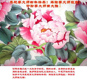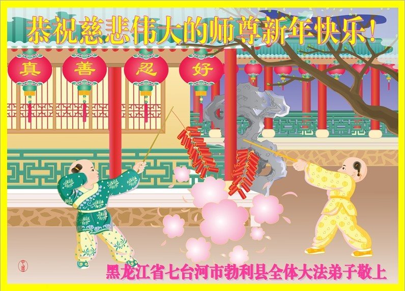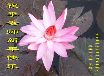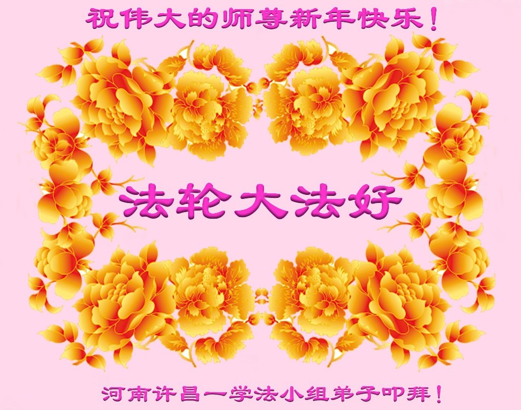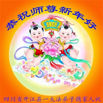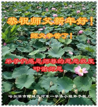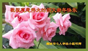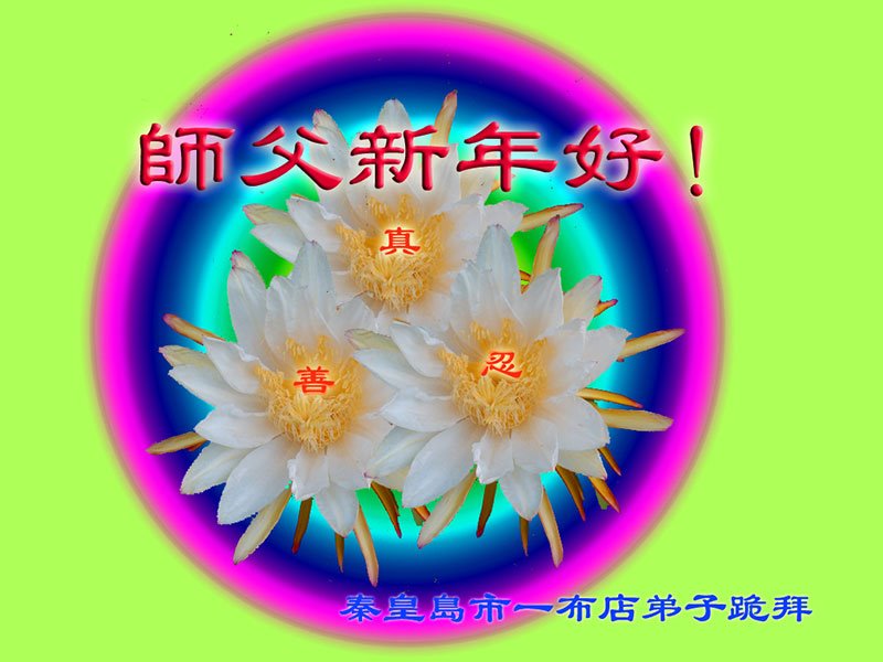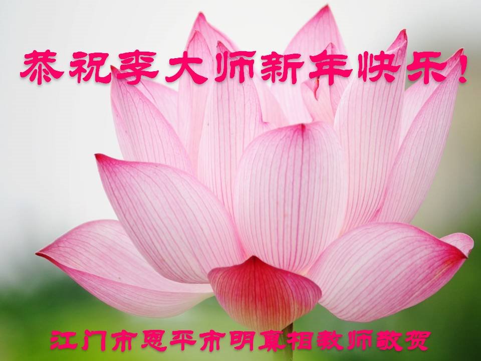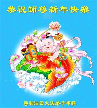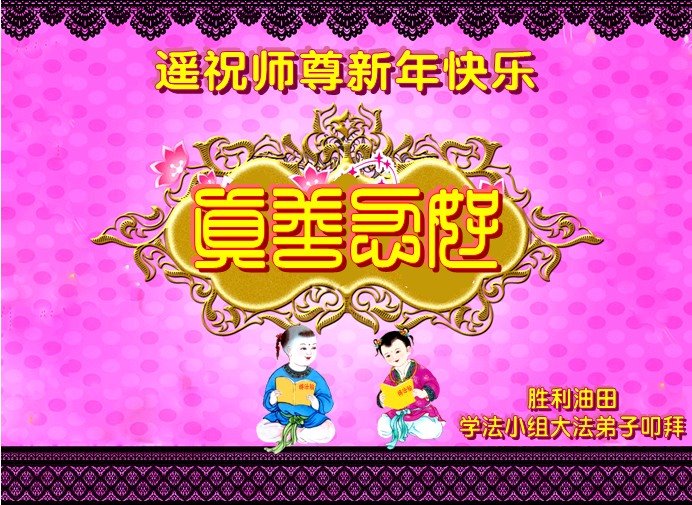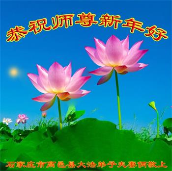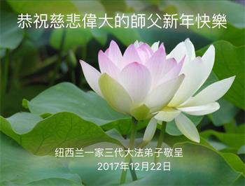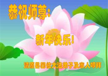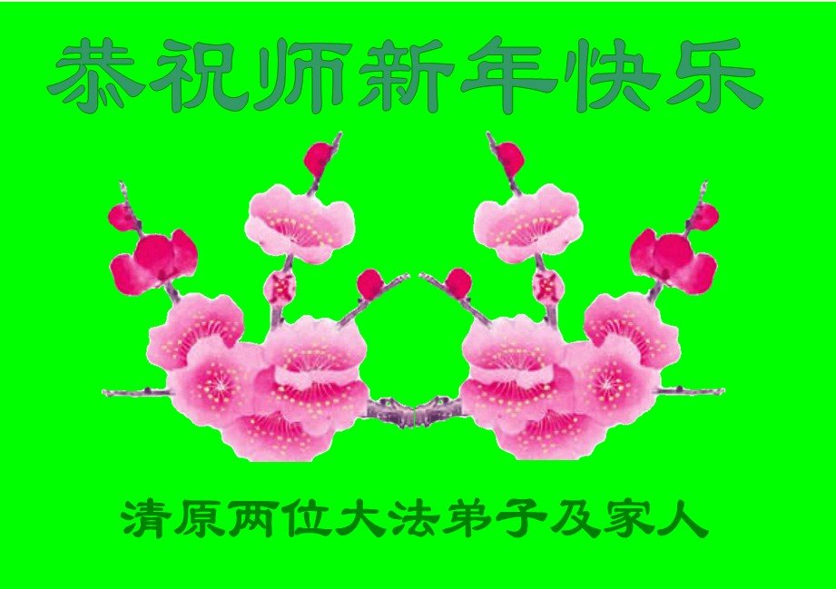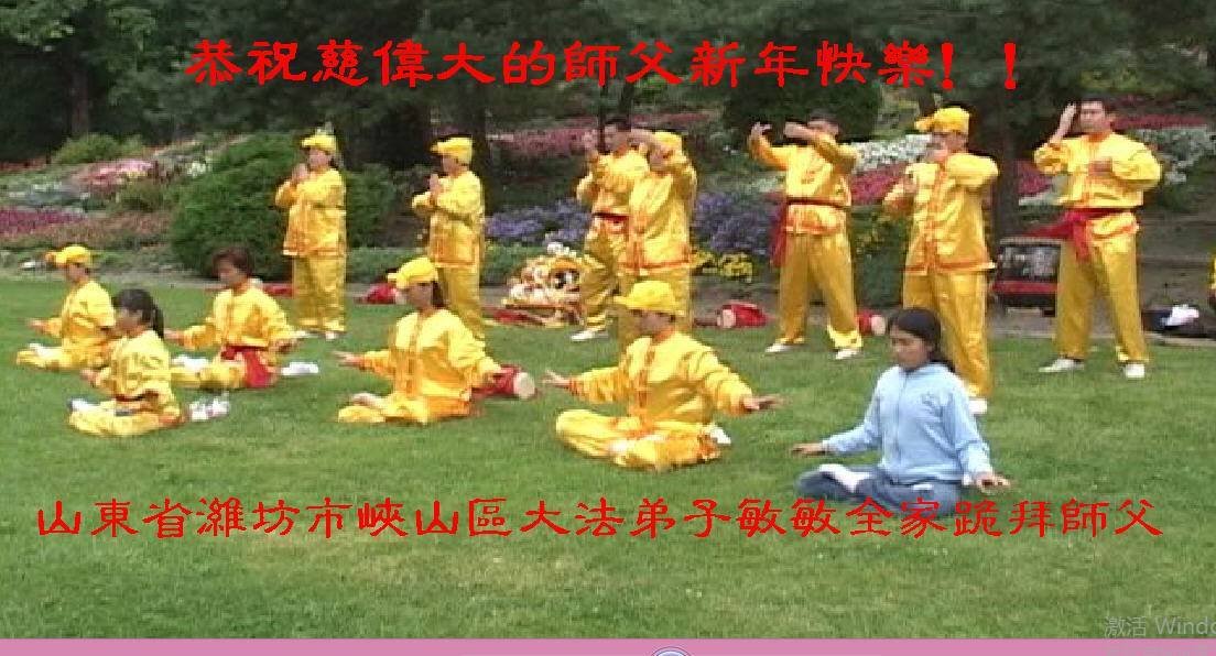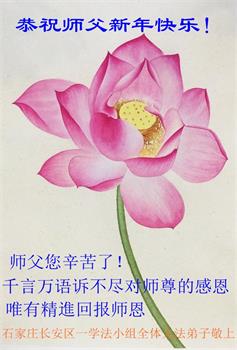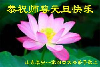为此在新年到来之际,我们全家七口人心怀无比的恭敬之心,恭祝慈悲伟大的李大师新年快乐!我们会永远记住“法轮大法好,真善忍好”。