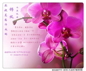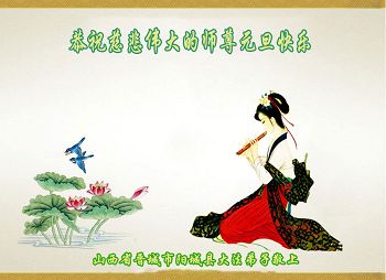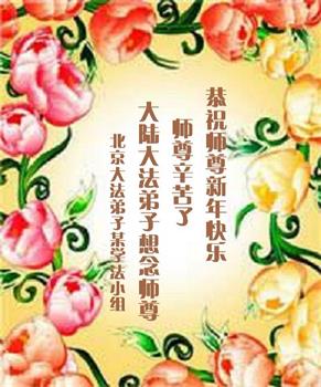 山西省大同国防军工系统大法弟子在贺词中说:“师尊,您太辛苦了!您为了挽救苍宇及众生吃了无数的苦,遭了无数的罪,为了我们这些大法弟子操尽了心”。