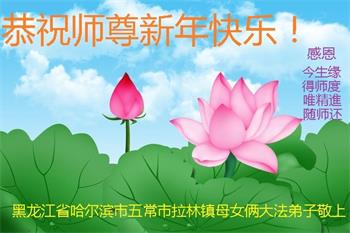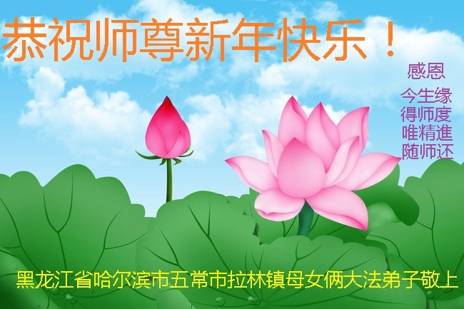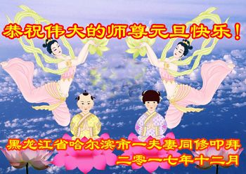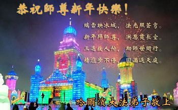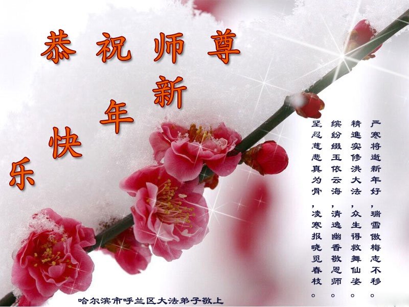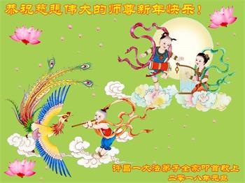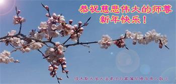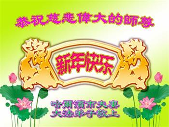 值此新年到来之际,我作为大法弟子家属,向师父献上诚挚的问候,祝师父新年快乐!早日回国!神韵早日登上中国大陆的舞台!叩谢师父救度之恩!