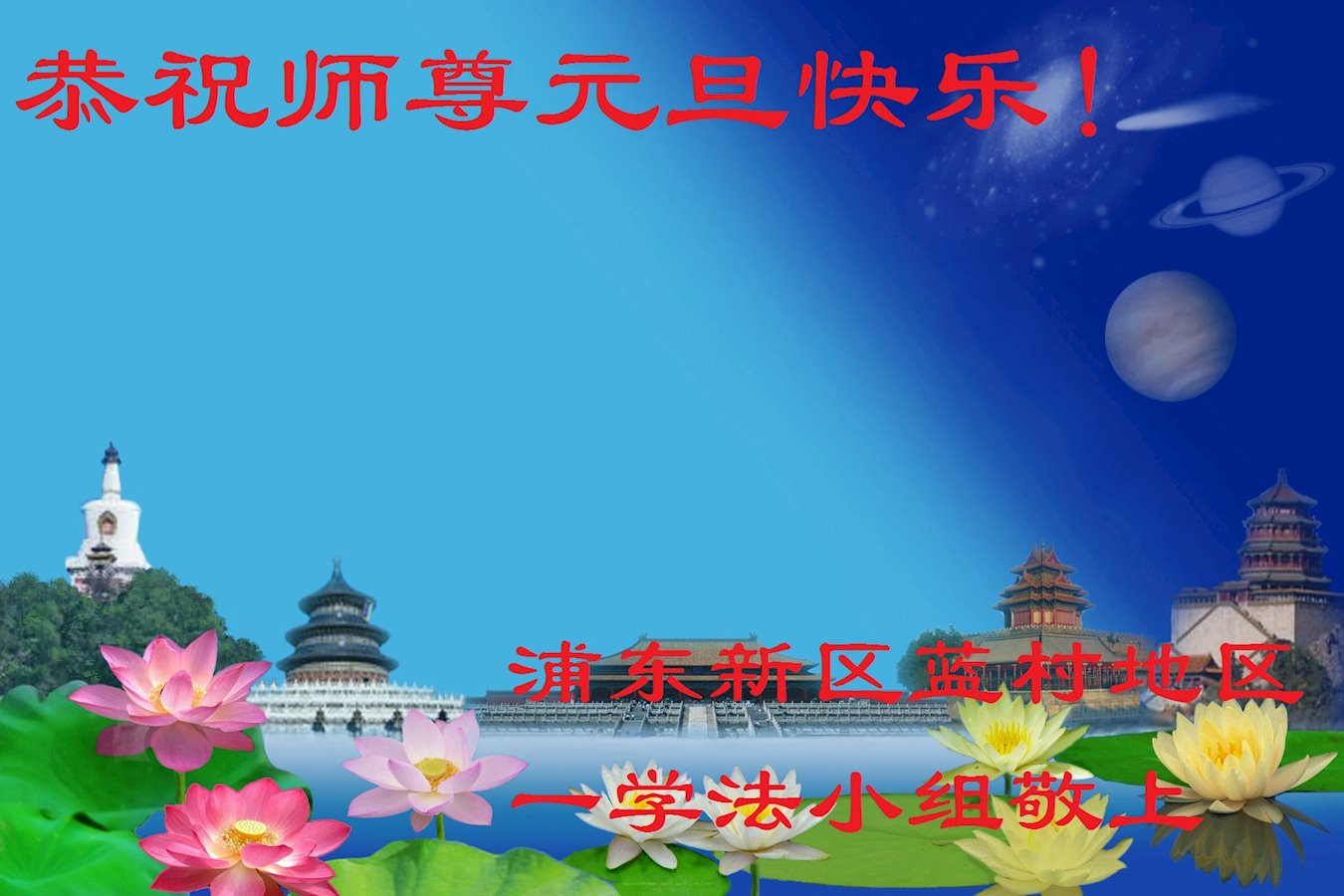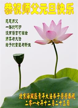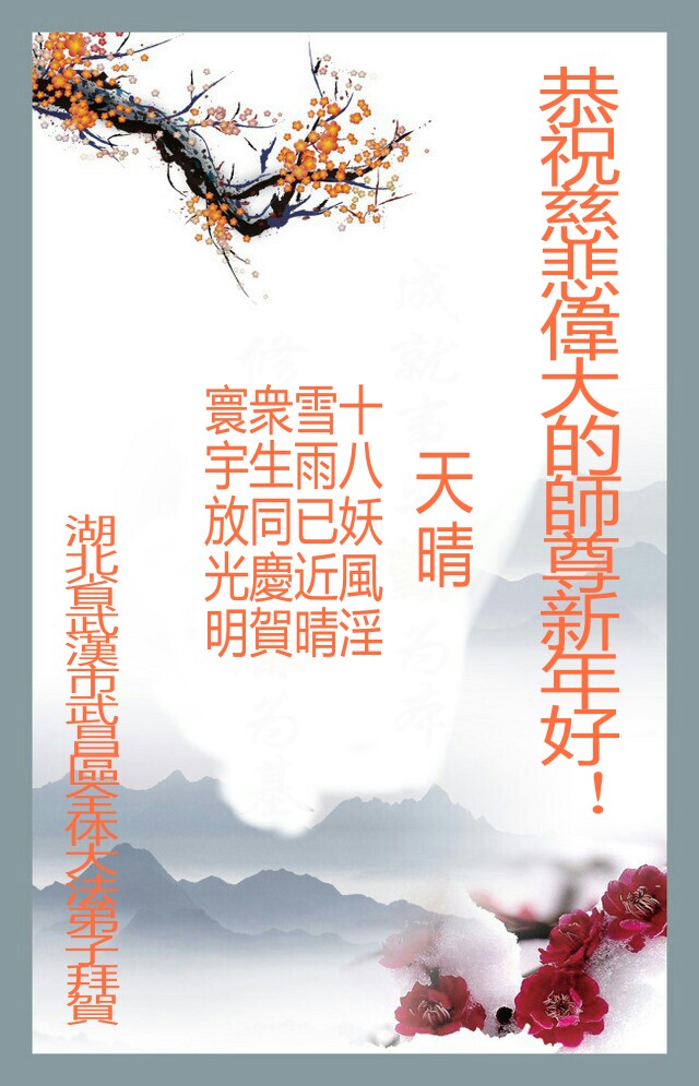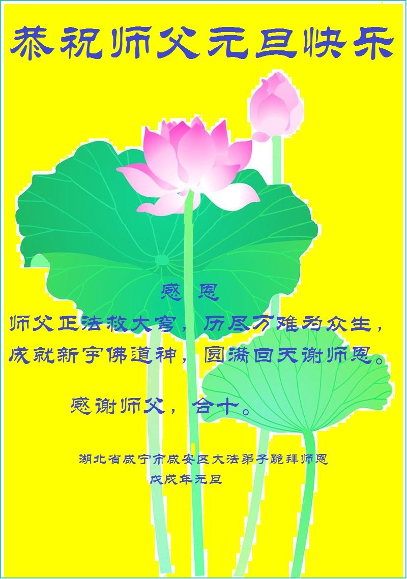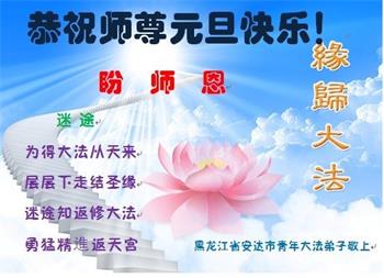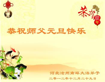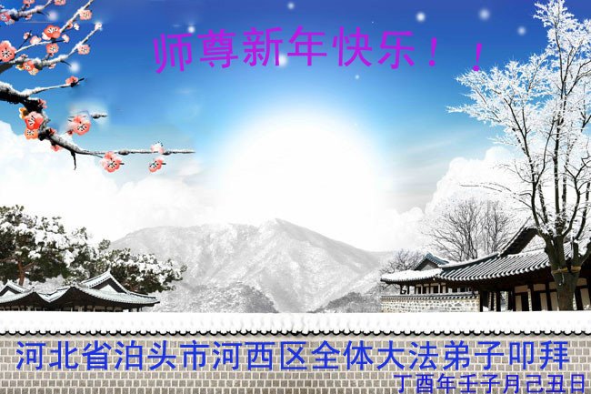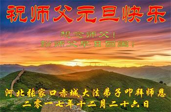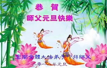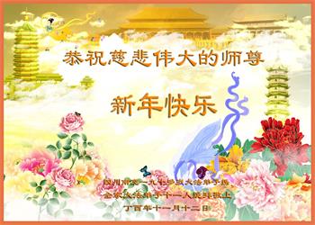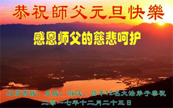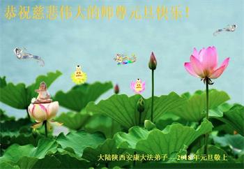 大陆大法弟子恭贺慈悲伟大的师尊元旦快乐!