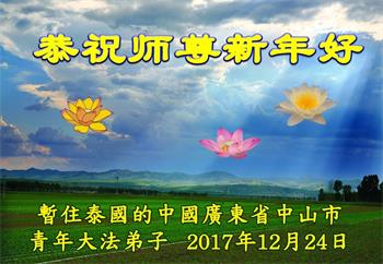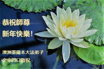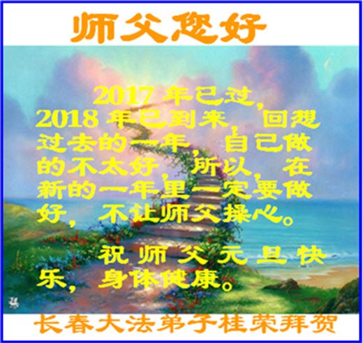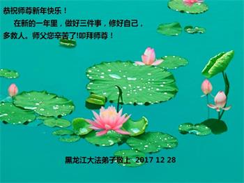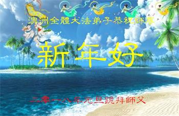 尊敬的师父您好!2018新的一年就要到了,值此辞旧迎新之际,澳洲昆士兰全体大法弟子恭祝慈悲伟大的师父新年快乐!师父您辛苦了!感谢师父的慈悲苦度!我们一定珍惜所剩不多的宝贵时间,更加精進,用心做好“三件事”,不负师父的慈悲苦度,不负众生的殷切期盼,兑现史前大愿。澳洲昆士兰全体大法弟子叩拜师恩!