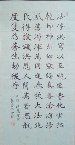 | 末后圣主来 警世先哲降,曾言末世哀。 济世 末劫平天难,慈悲大法传。 开新元 辉煌真善忍,创世主真言。 |