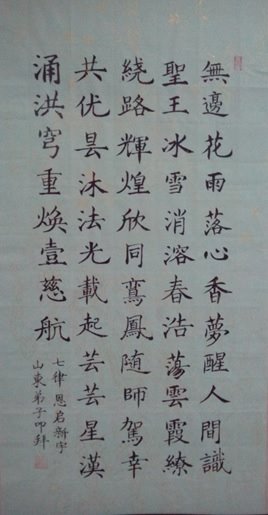 | 塞外寒风卷素花 冰清玉洁遍天涯 迷中乱世路何在 法轮大法放光华 |