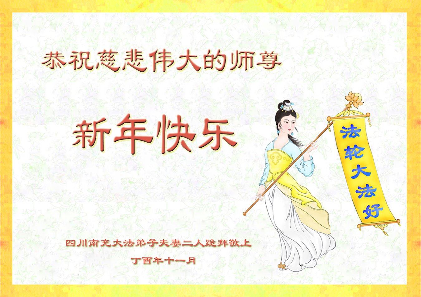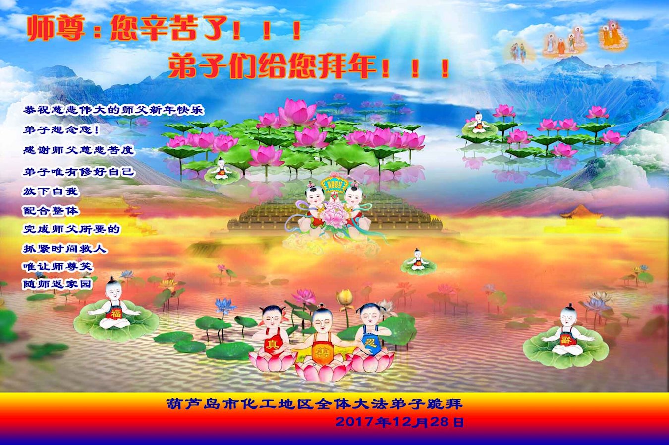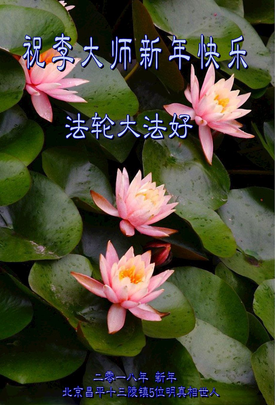 2018新年来到,中国各地民众给大法师父发来贺信,恭祝李大师新年好!盼望师父能早日回国!