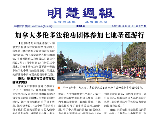 加拿大多伦多法轮功团体参加七地圣诞游行