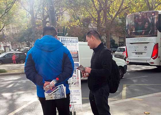 在埃菲尔铁塔旁的法轮功真相点,听法轮功学员讲真相的大陆游客们,主动说出心里话的多了,集体登记退出中共党团队,摒弃中共的也多了。
