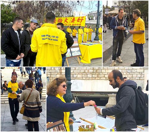 图1~2:希腊学员们在雅典宪法广场讲真相征签反对迫害